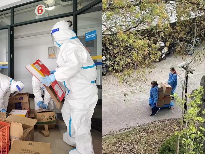 每日相伴大家左右的宿管阿姨们大多五六十开外,从3月初封控开始,就和同学们一起封控在宿舍楼里,她们不仅要值守宿舍安防,还在同学们足不出户的日子里给大家搬运三餐、分发物资,并做好楼宇内每日的消杀和保洁。