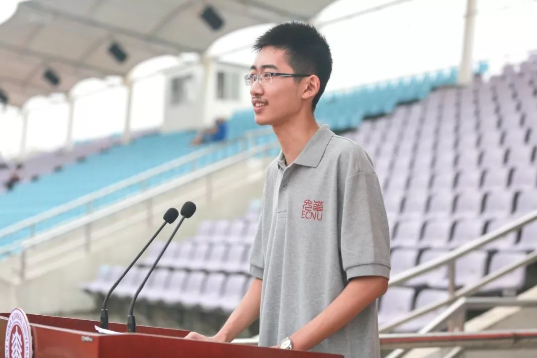 丁又也作为2019级新生代表在学校开学典礼发言