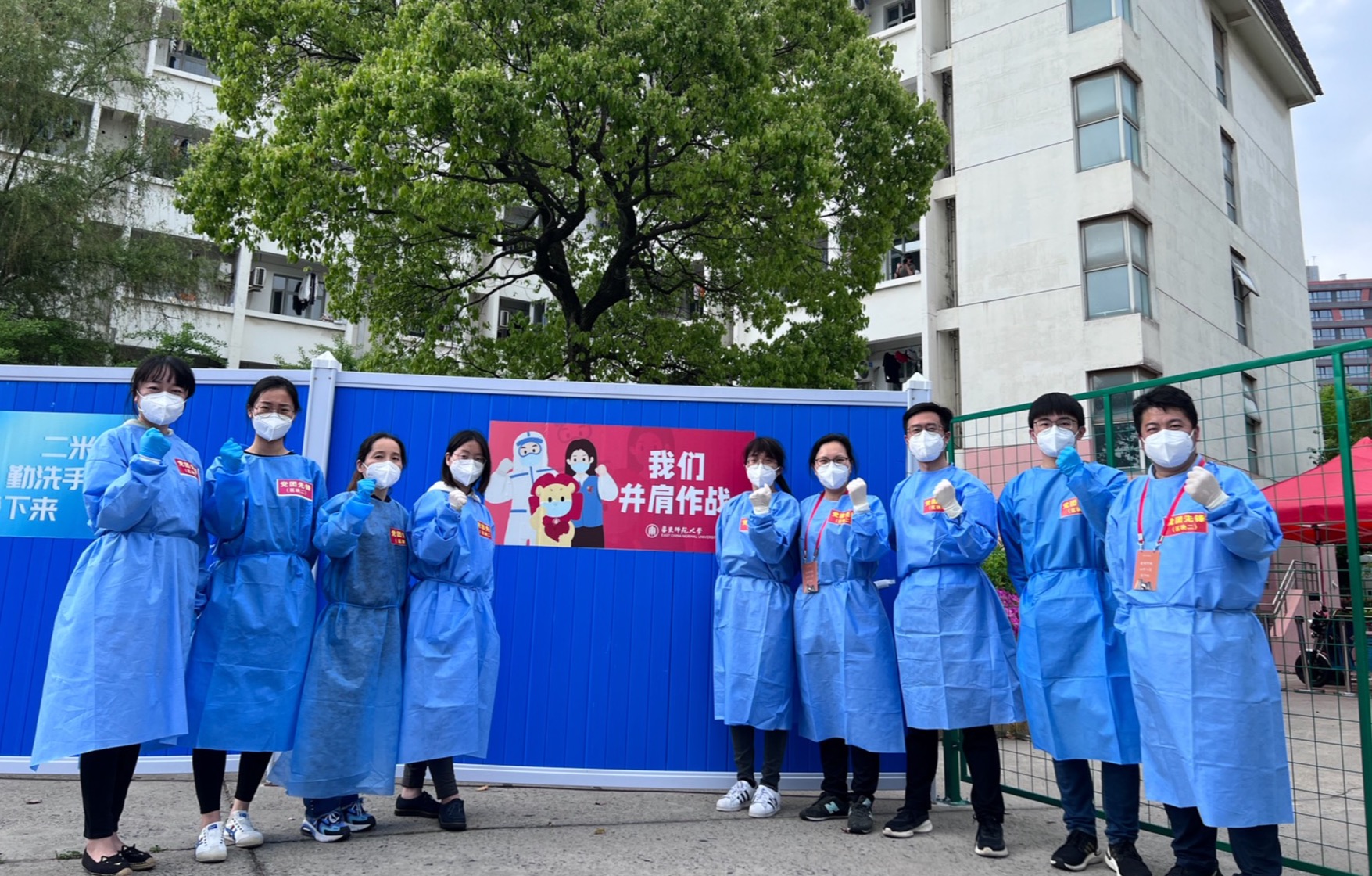 除了上述故事里的主人公,本科生片区负责人王庆华、刘麒,闵行校区学工条线负责人闫露、学工部副部长王新燕,区块二副块长梁宏亮,以及本科生公寓9号楼楼长赛依努尔、陆敏、张婷,本科生公寓10号楼楼长姚燕珊、桑艺宁,13号楼楼长杨琪、王海建,14号楼楼长吴月洁、陆云鹏,都是我从3月13日进校参加战疫以来在区块二的亲密战友。
