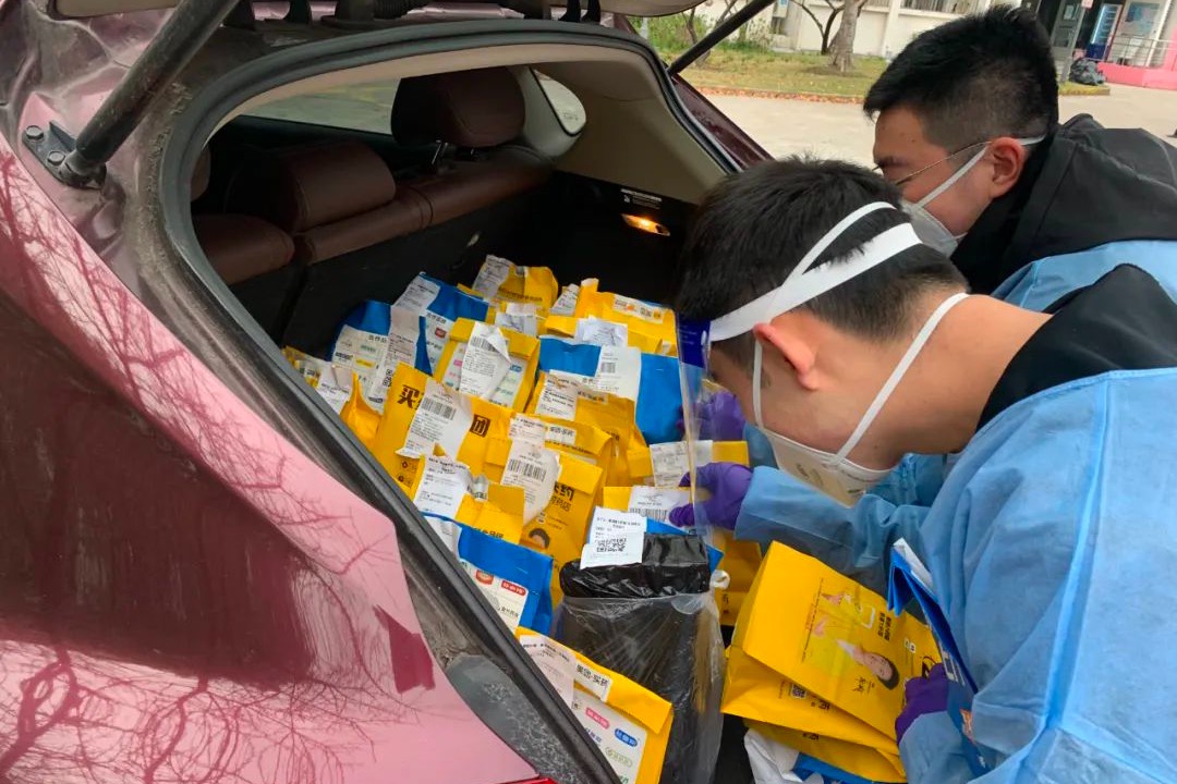 还有学生通过健康云、美团等线上自行购药也有师生志愿者送药上门,打通校园中的最后一公里。