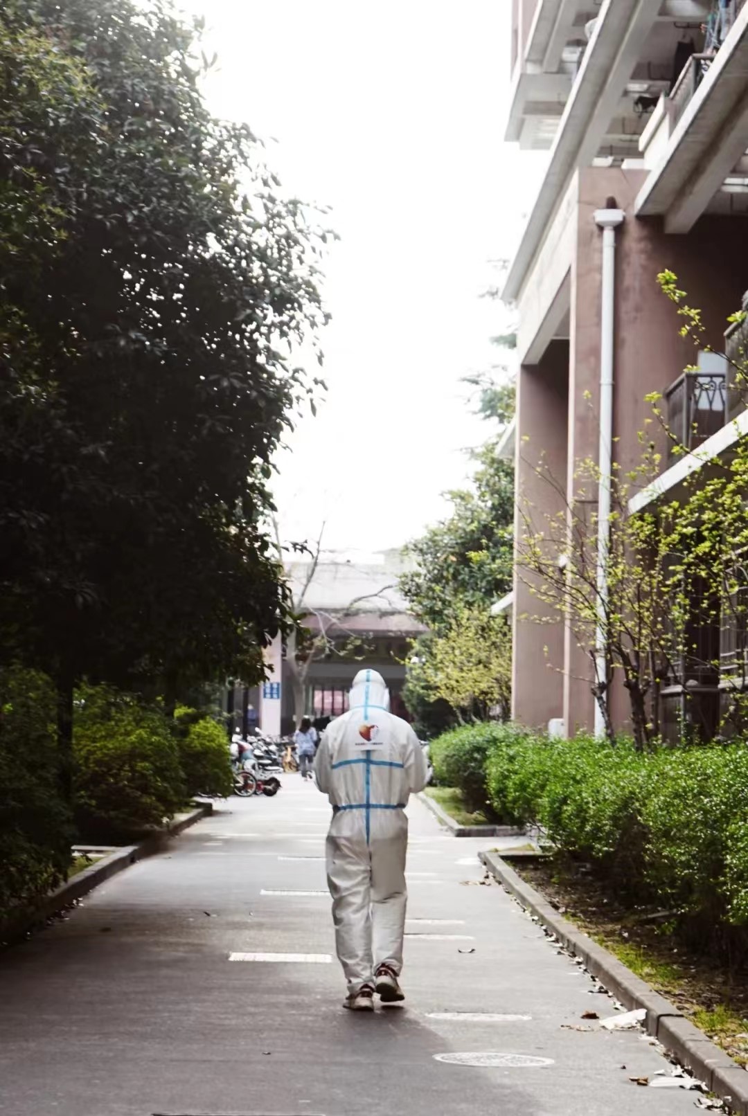 这是我第一次穿上“大白”,从中午十二点半到下午五点,在烈日下奔走,安排志愿者上岗与换岗,逐一确认每栋楼宇是否均全员完成核酸检测等等。当脱下防护装备时,我浑身都湿了,手上也全是汗,像刚刚从水中被捞出来一样。