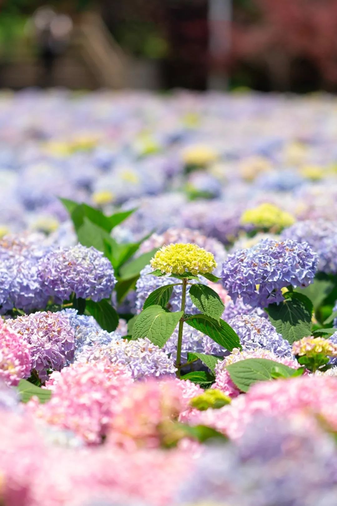 即将登场的圆锥绣球与之前的绣球无尽夏有哪些不同呢?原来绣球无尽夏是灌木,所以高度最多只有1.5米,圆锥绣球是灌木或小乔木,高度更高,可以达到5-9米,所以更有利于毕业季拍照留念。