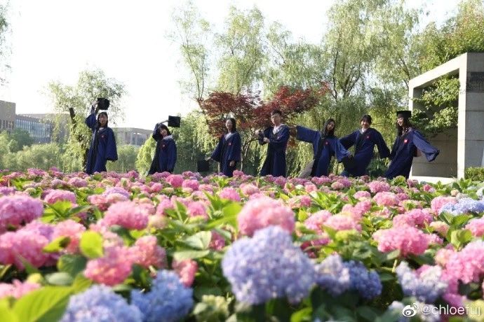 5月14日、15日,在闵行校区文脉廊和普陀校区校训碑前,10000株圆锥绣球在校园扎根,和毕业生们一同迎接盛夏的到来。