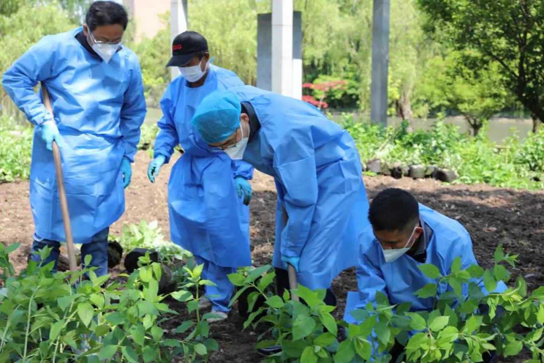 “毕业花在校园里播种,而青春之花则要在奋斗中绽放。在坚决打赢大上海保卫战的关键时刻,以此寄望包括毕业生在内的所有正在经历艰巨战疫的同学们,在担当中历练,在尽责中成长,成为有理想、敢担当、能吃苦、肯奋斗的新时代好青年。”驻守两校区的校领导和部分在校师生们一同种下毕业花。