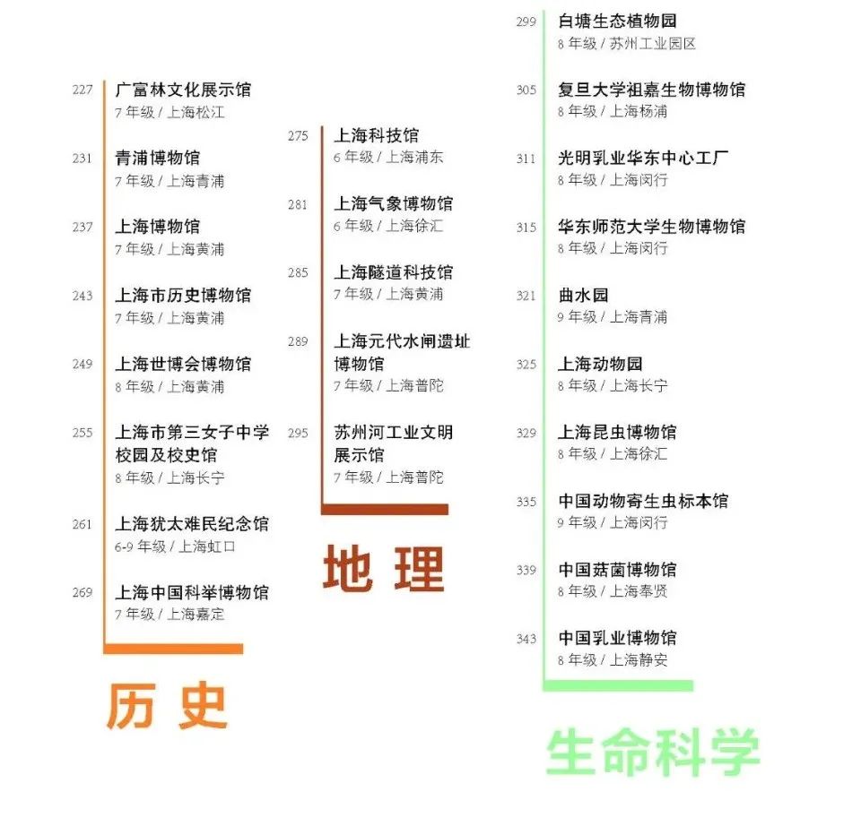 三是凸显“上海文化”品牌,如选取承载红色文化、海派文化、江南文化特征的上海电影博物馆、上海吴昌硕纪念馆、川沙戏曲艺术展示中心等;融合“建筑可阅读”的理念来认识博物馆,理解诸如上海市历史博物馆、上海气象博物馆等在延续城市文脉、保留城市记忆的作用;收录反映城市立体造像、被列入“上海历史文化风貌区”的上海邮政博物馆、上海犹太难民纪念馆、张乐平故居等;还有属于“一江一河”概念的西岸美术馆、苏州河工业文明展示馆等都分列其间,这些都是将文化软实力转化为青少年教育资源的初步尝试。
