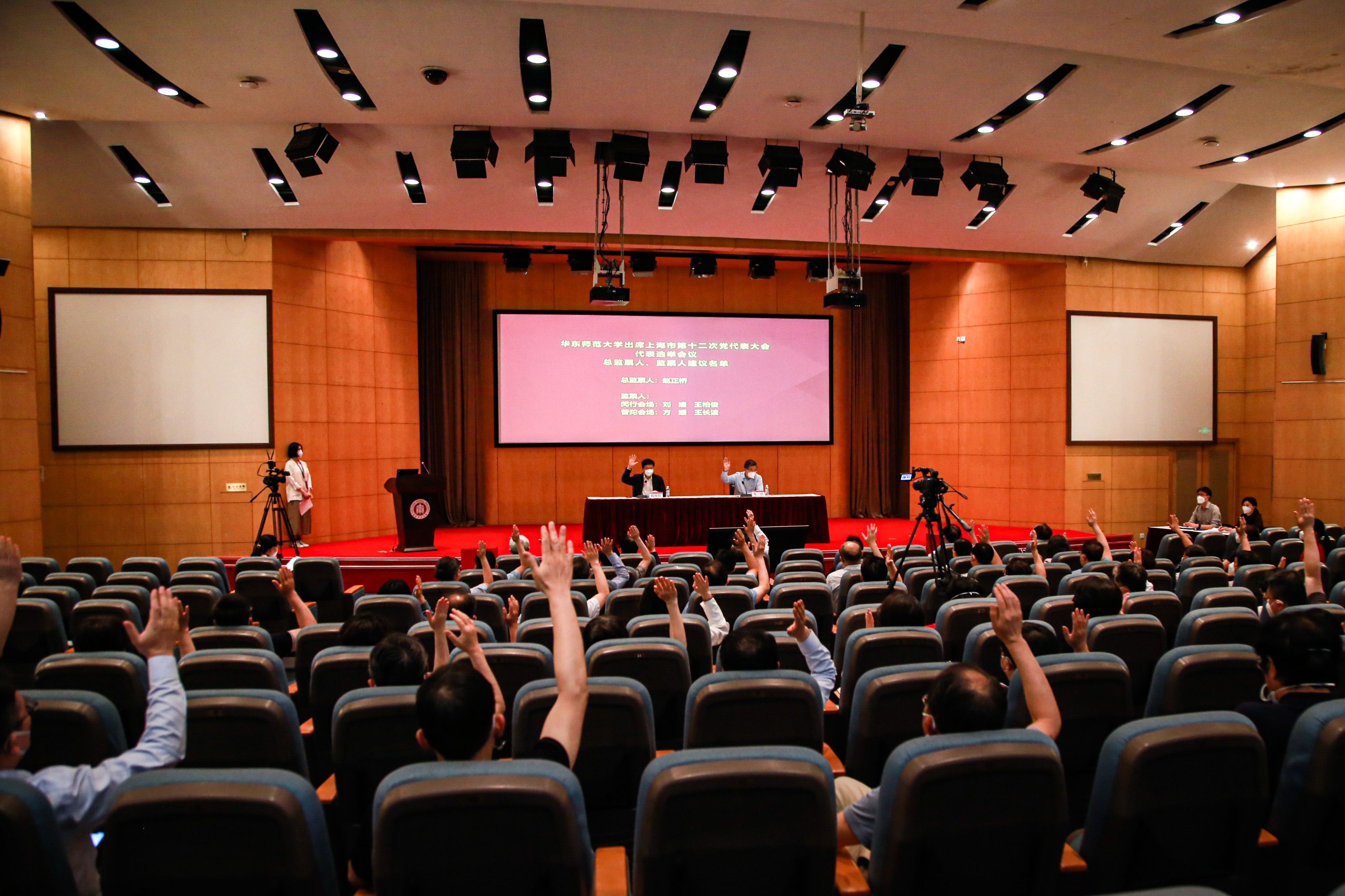 6月8日下午,中国共产党3245澳门新莆京代表会议在两校区同步举行,会议选举产生了学校出席中国共产党上海市第十二次代表大会代表。校长、党委副书记钱旭红主持会议。