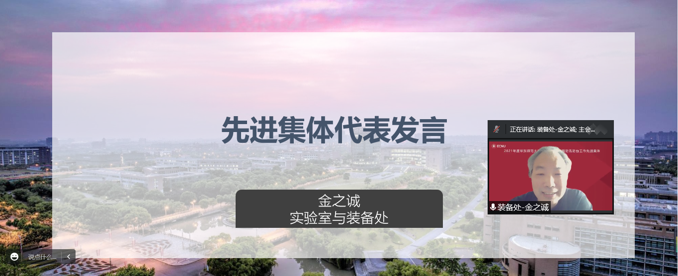 实验室与装备处金之诚老师作为先进集体代表交流发言