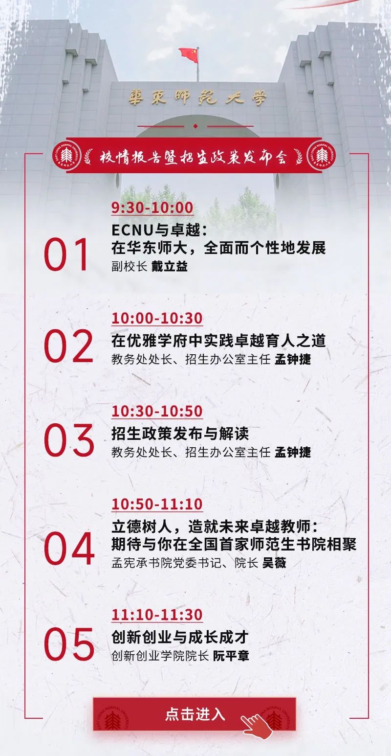 来源|华东师大招生办公室 直播通联|金亚珺 编辑|吴潇岚 吴卓佳 编审|郭文君 吕安琪