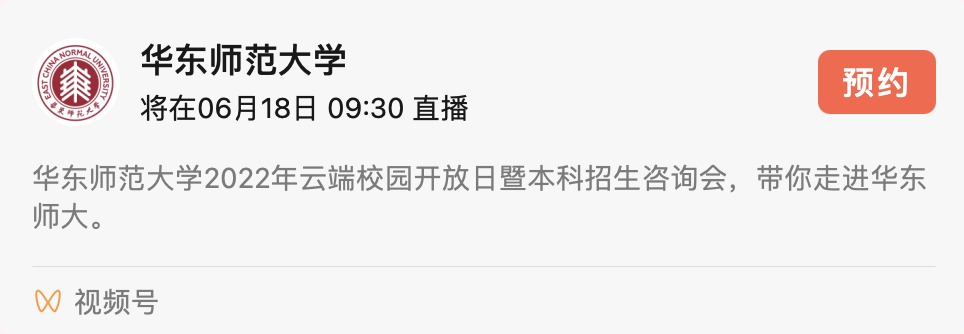 华东师大本科招生视频号