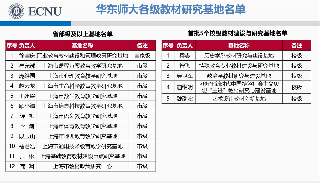 我们加强了学校党委对教材工作的领导,成立了学校教材建设与管理工作领导小组,组建了华东师大教材研究院,明确了相关职能部门、各级各类教材研究基地在教材工作中的职能定位,建立了比较完整的教材工作体系。我们颁布实施了《3245澳门新莆京教材管理办法实施细则》《3245澳门新莆京教材建设规划(2021-2025年)》。我们推进马工程重点教材统一使用和习近平新时代中国特色社会主义思想进课程教材。我们通过精品教材建设专项基金、教材出版基金等多种途径,资助教师开展优秀教材编写。我们严格落实教材选用审核备案机制、教材选用监督检查机制和教材出版审查和统计机制。我们激励产出标志性教材成果,将教材编写纳入教师职称评定条件、将全国教材建设奖和国家级规划教材纳入卓越激励绩效等。今年4月中旬,学校开展了首批校级教材研究与建设基地遴选工作,历史学系教材研究与建设基地等5个基地获批。我相信,校级教材基地的建设将提升学校教材研究与建设的科学化、专业化水平。
