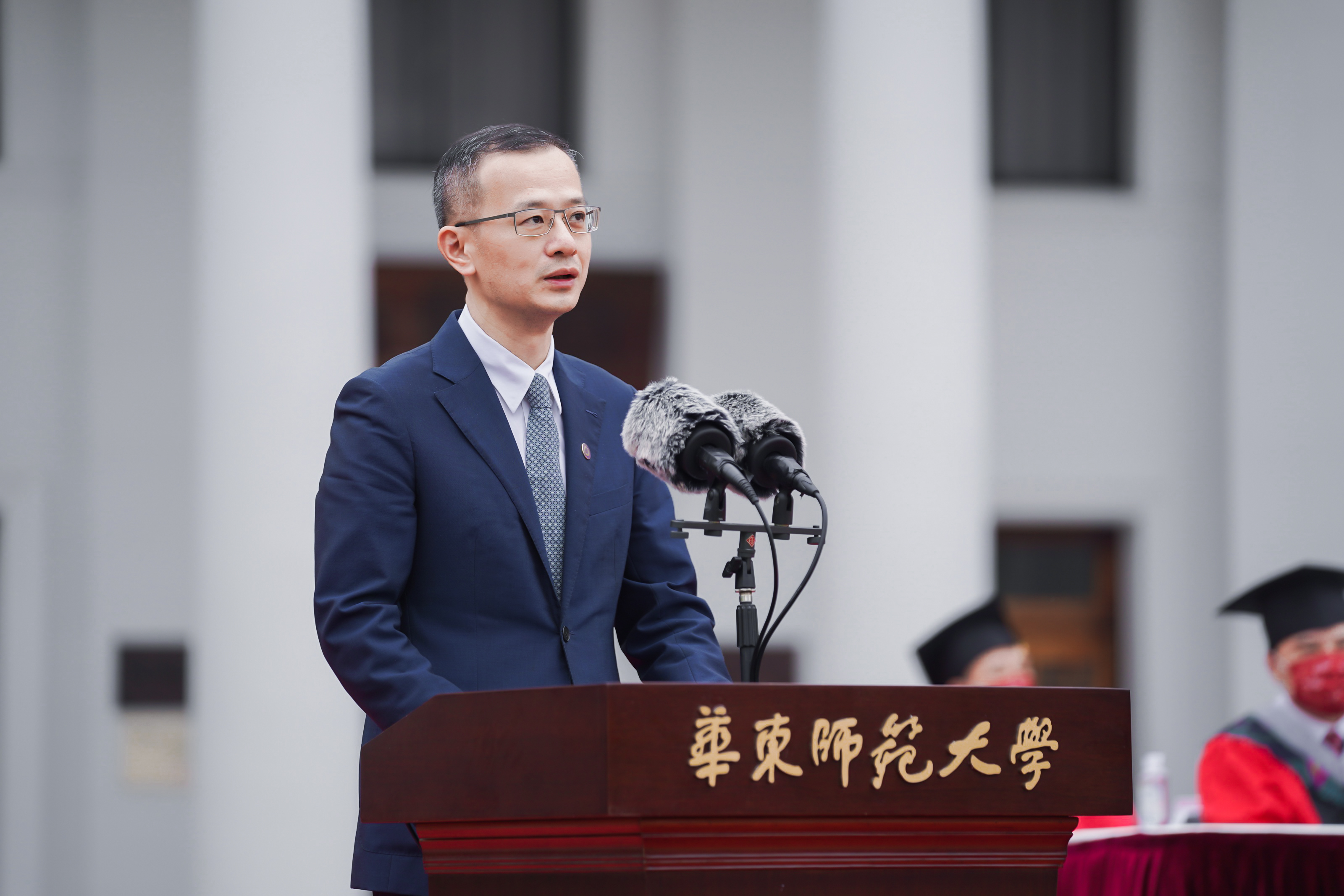我父亲毕业于华东师大,我毕业于华东师大,我太太也毕业于华东师大,我永远以自己是华东师大人为荣,希望同学们能够在接下来的工作生活当中越来越好,永远为自己是华东师大人而骄傲。