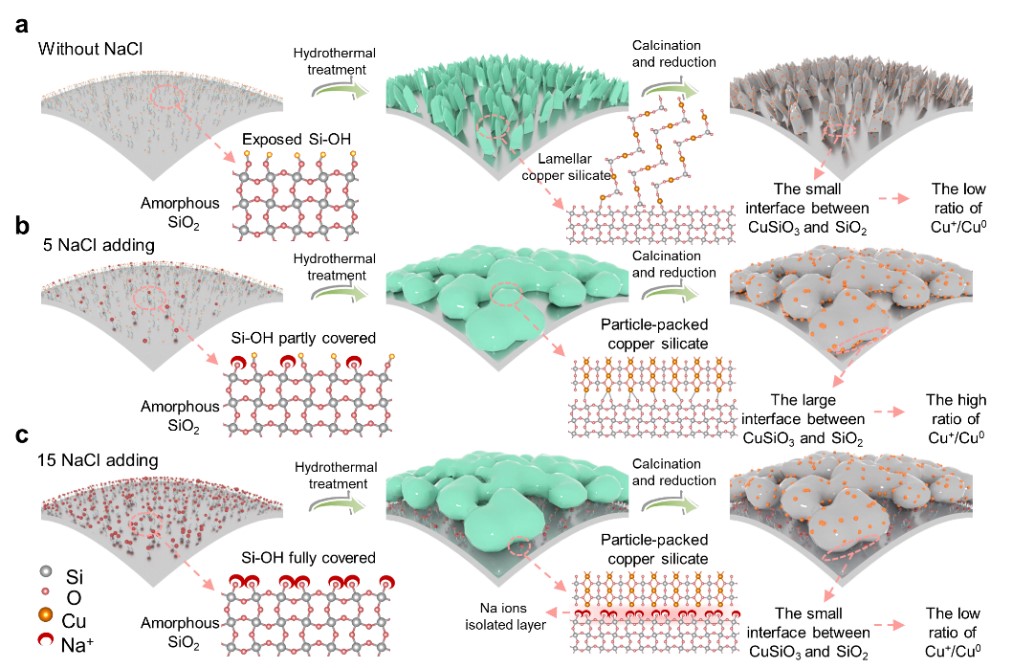 图3. 水热合成过程中引入不同量NaCl的Cu/SiO2催化剂形成机理