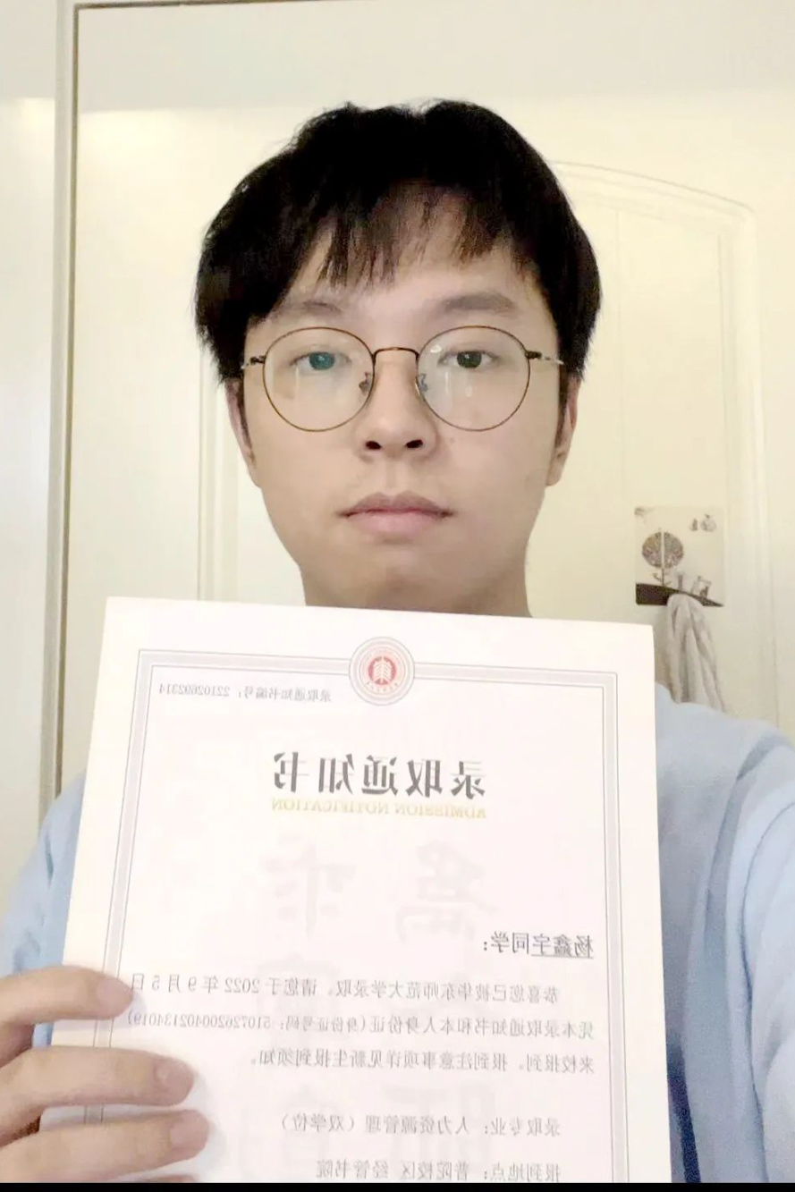 专业选择方面,一直以来,我对于历史文化和语言文字有比较浓厚的兴趣,喜欢去了解一些多样的人文历史和语言特色;今年华东师大的翻译与历史学专业开始招生后,一下子就戳进了我的心坎里,强强联合的二者,都是我十分感兴趣的。华东师大是我一直很向往的大学,综合实力、校园文化等等;尤其是近几年各地就业落地政策出台后,华东师大更加吸引着我,于是我选择填报师大。很幸运,华东师大录取了我。