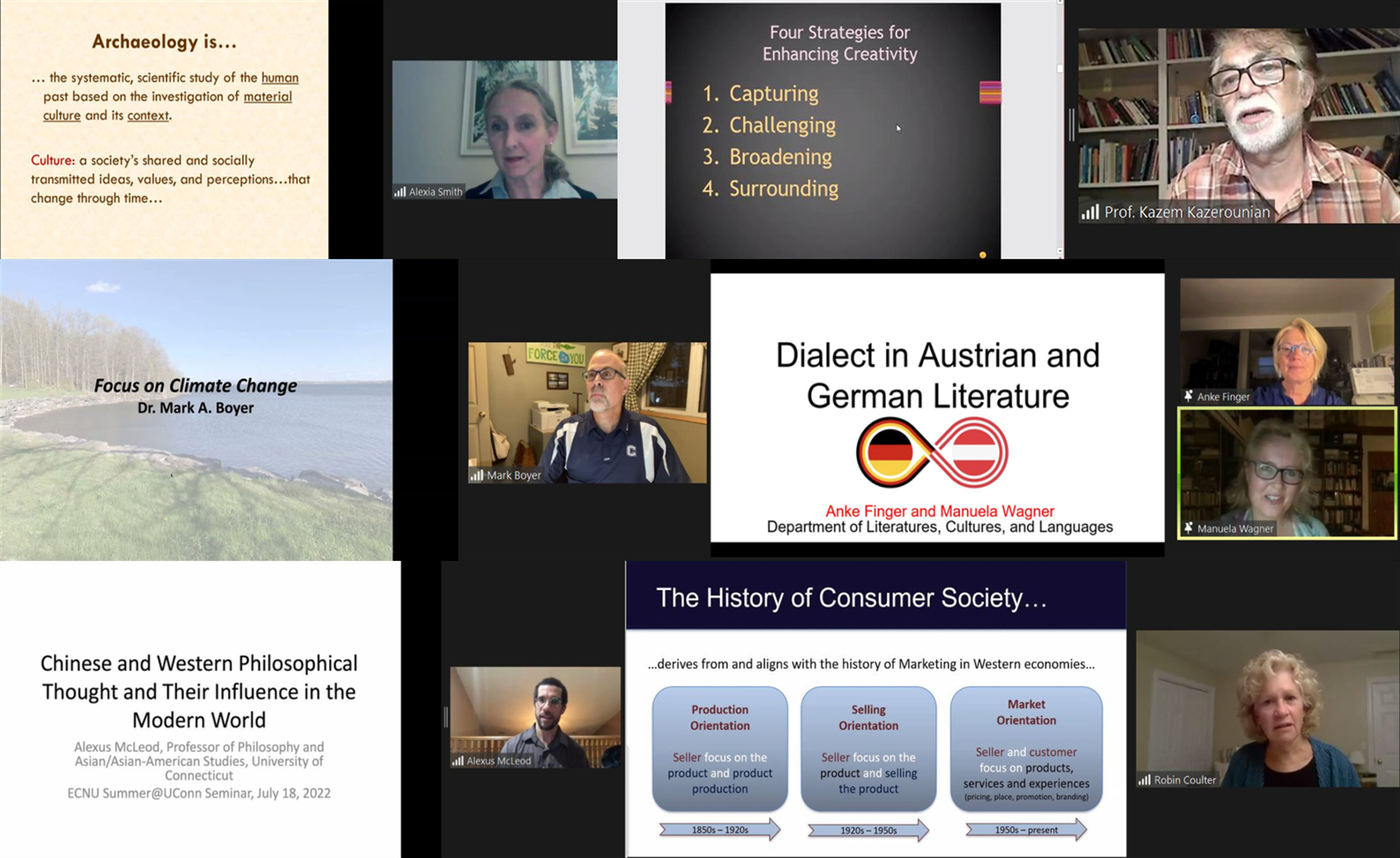 7月14日,项目入学指导会议召开,康涅狄格大学全球事务副校长Daniel Weiner、全球事务助理副校长Yuhang Rong(荣宇航)、项目负责人Kathryn Warrender-Hill、协调员Laura Labato,华东师大教务处、国际合作与交流处的相关老师及全体学员参会。会议介绍了课程设置、课前预习、过程性评价等内容,并带领同学们云游了美丽的康大校园。