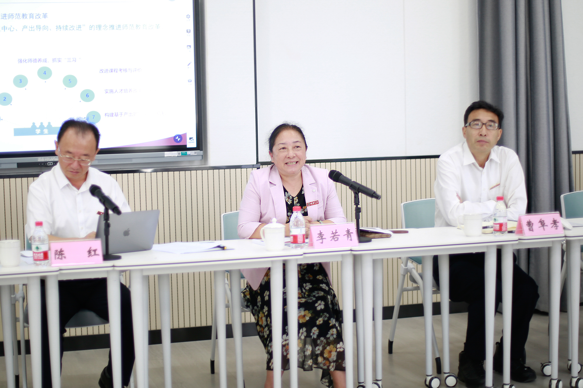 李若青做了题为《聚焦师范生培养协同推进教师教育高质量发展》的专题汇报,认真分析了学校在师范教育发展方面存在的问题,指出协同提质计划要重点聚焦在人才队伍提质、学科专业提质、师范生能力培养提质、服务基础教育能力提质、地方特色资源共同开发研究等五个方面,希望能加快实现专业内涵式发展、师范生综合素养提升、硕士点建设与申报、滇东北基础教育研究中心四个具体目标。
