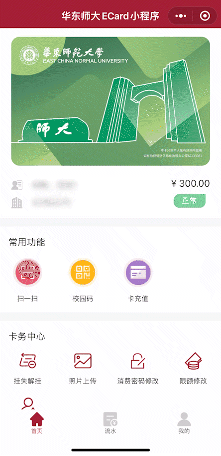 新系统支持刷卡、手机扫码等多种模式。手机打开“华东师大ECard”小程序,点击“校园码”或“扫一扫”,即可扫码就餐。据了解,人脸识别支付功能正在研发调试中,敬请期待!