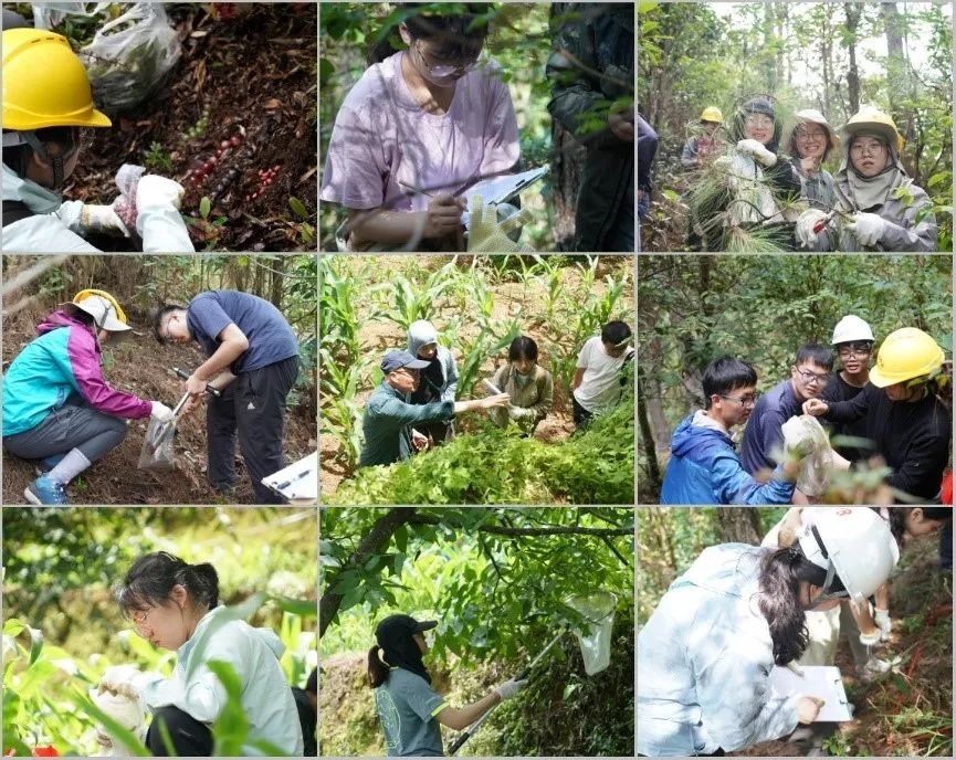 课程首次开课时,学生野外调查与丈量各类生物多样性和土壤理化性质
