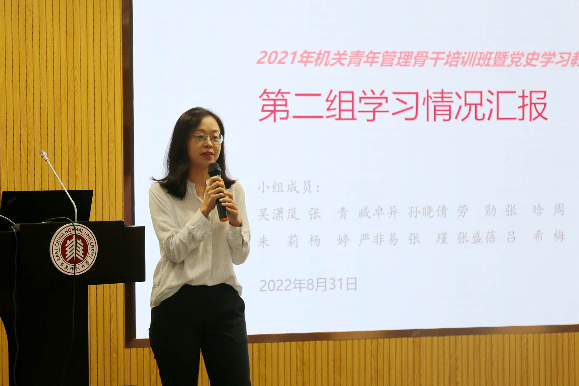在结业式上,培训班三个组的组长教务处经雨珠、党委宣传部吴潇岚、国际合作与交流处何所思汇报了各组学习情况,以工作案例实际出发,介绍了机关青年们如何将所学运用于工作实践,并展示了机关青年在战疫中的风采。