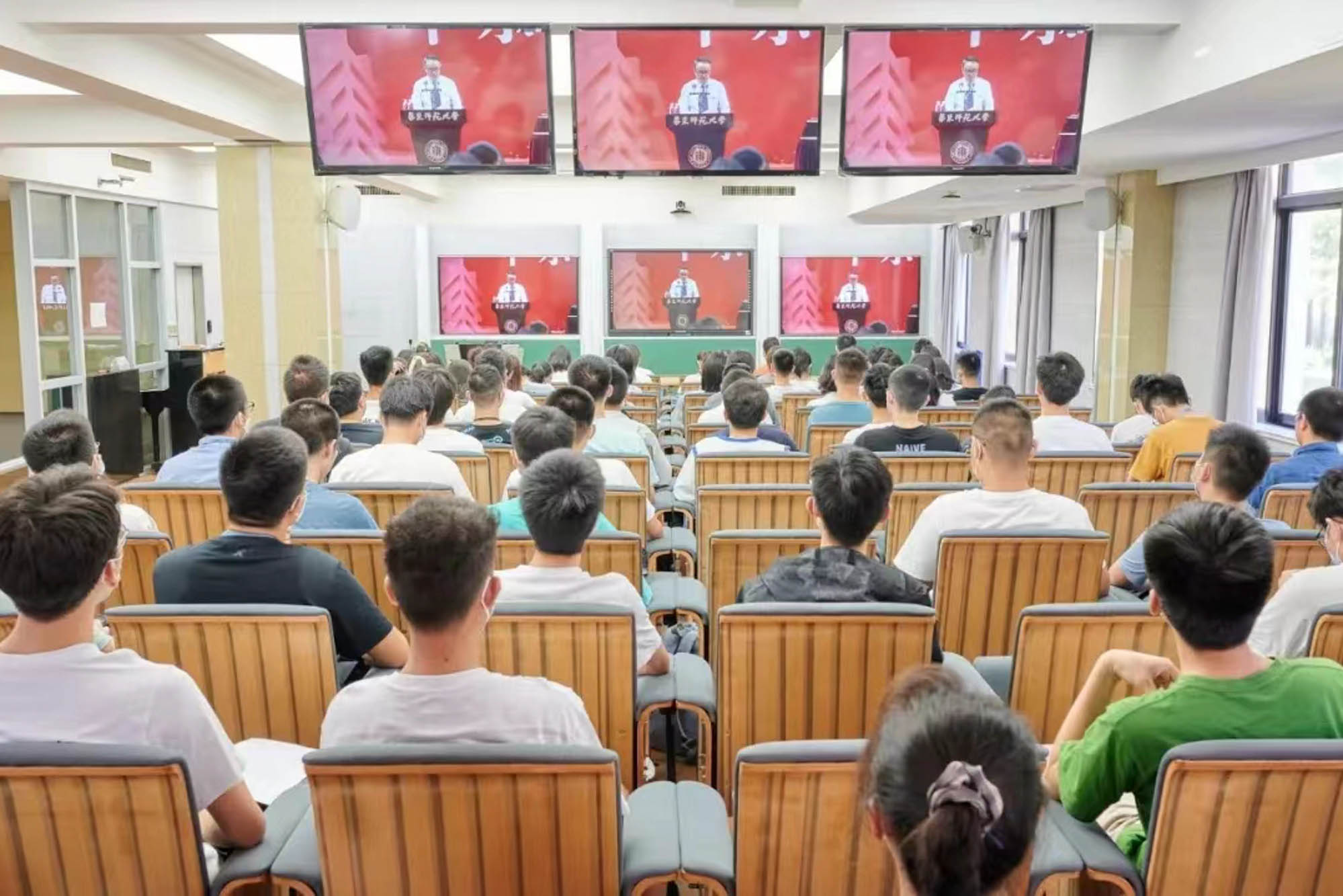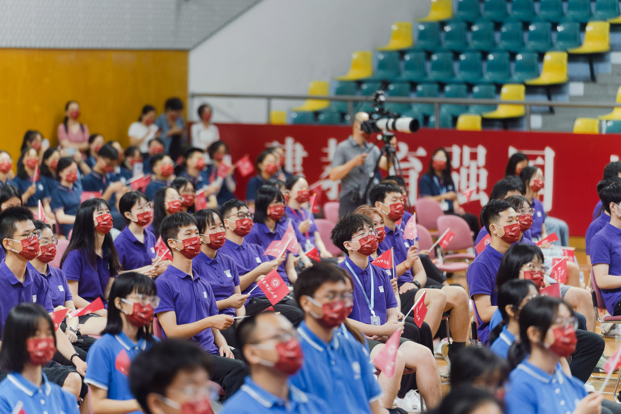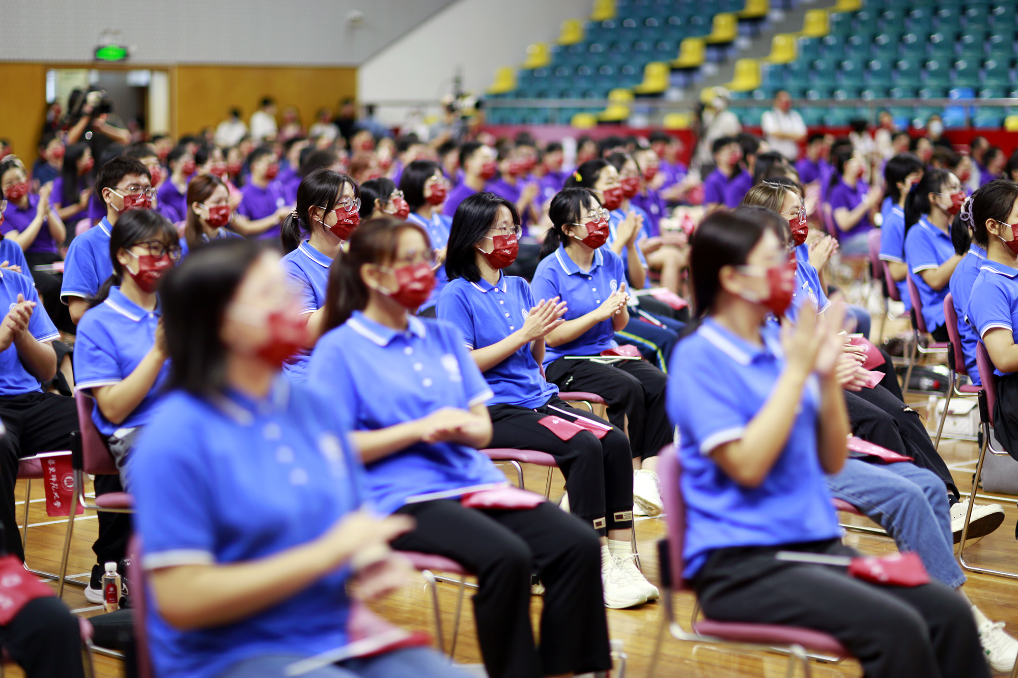 开学典礼在普陀校区体育馆主会场举行。出于防疫安全考虑,10950名来自全国和世界各地的优秀学子,以主会场和分会场以及在线直播相结合的方式相聚线下和“云端”,开启大学生活新征程。