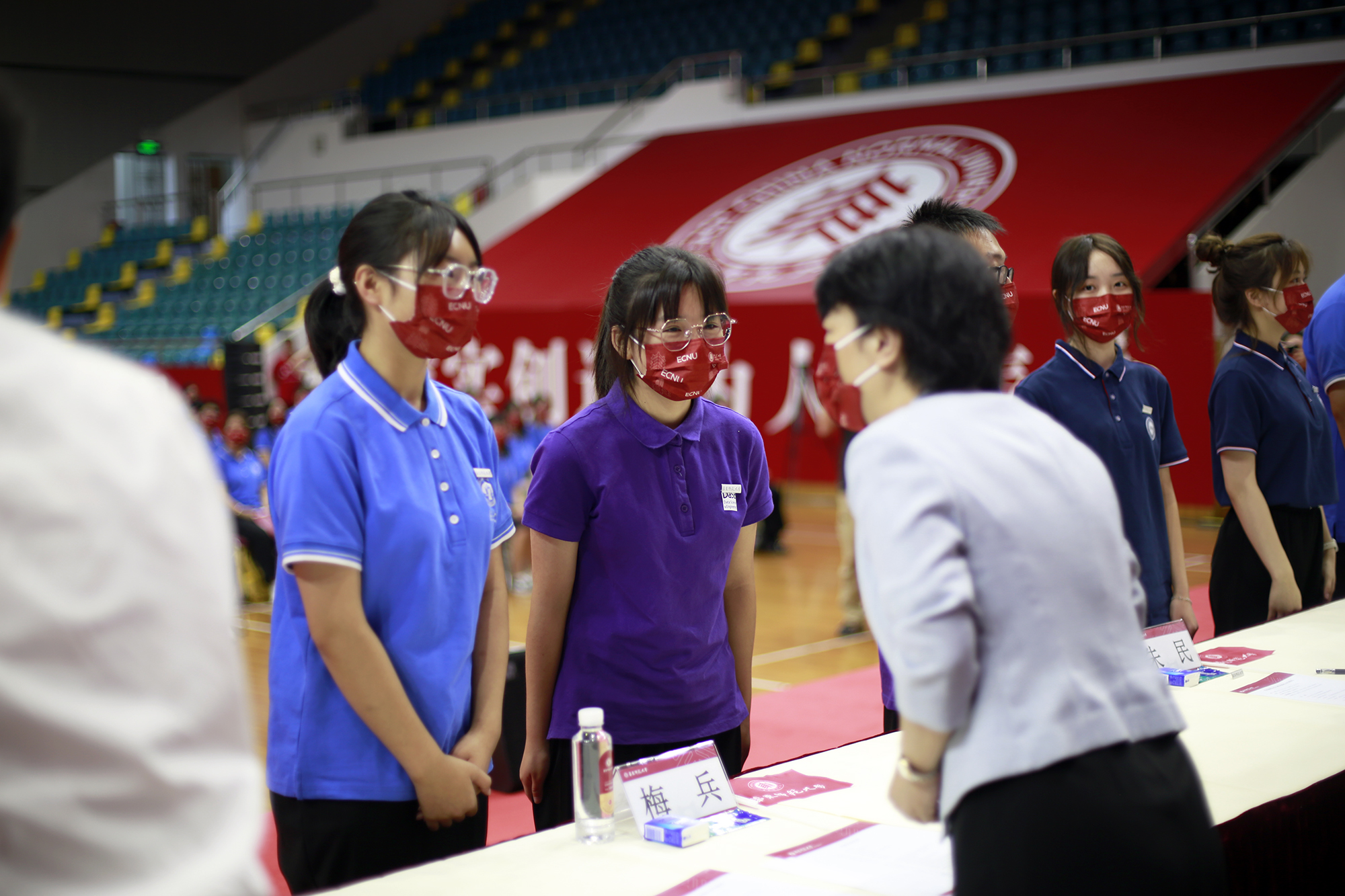 戴上校徽正式成为华东师大人 校党委书记梅兵为新生佩戴校徽