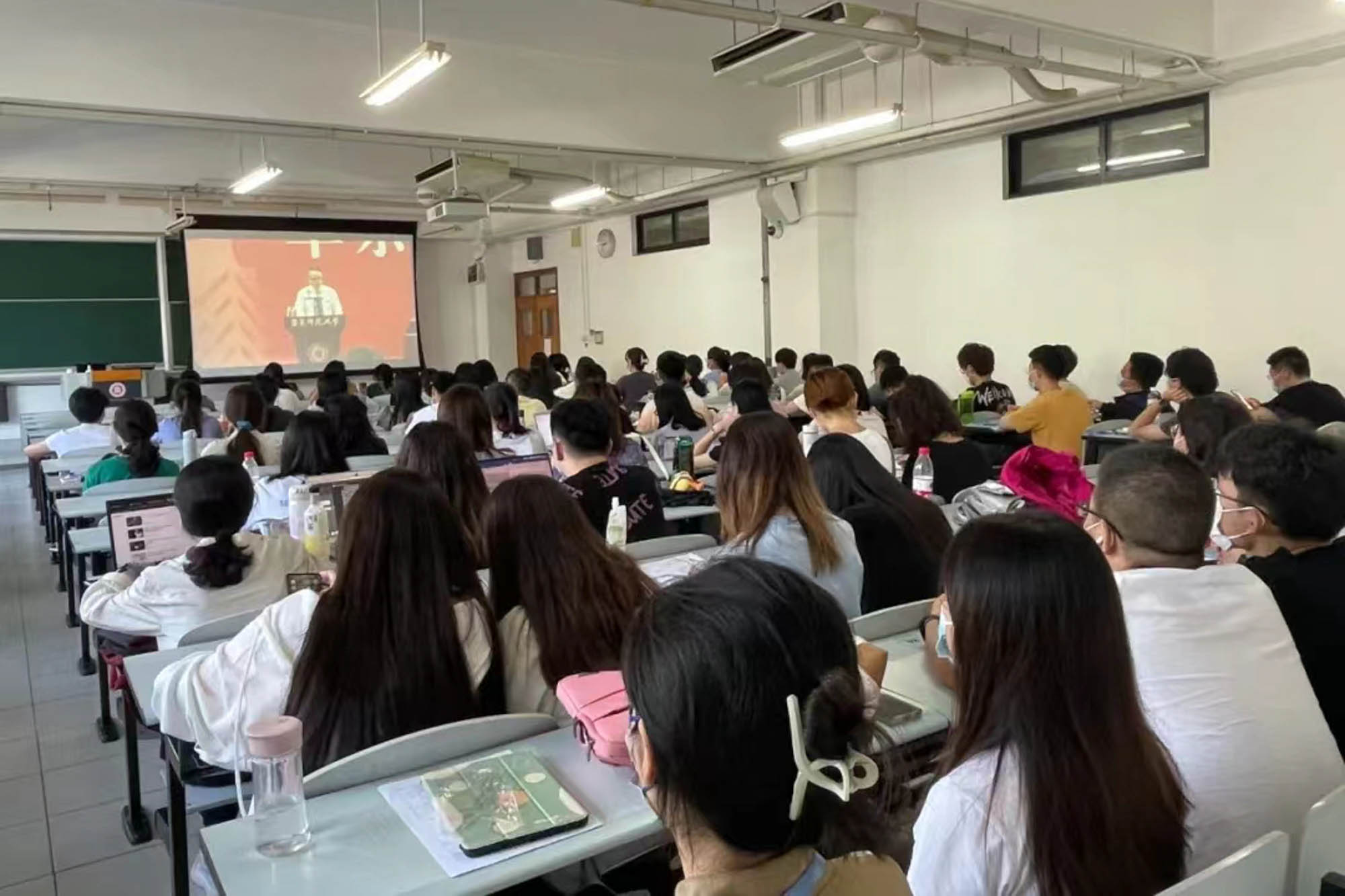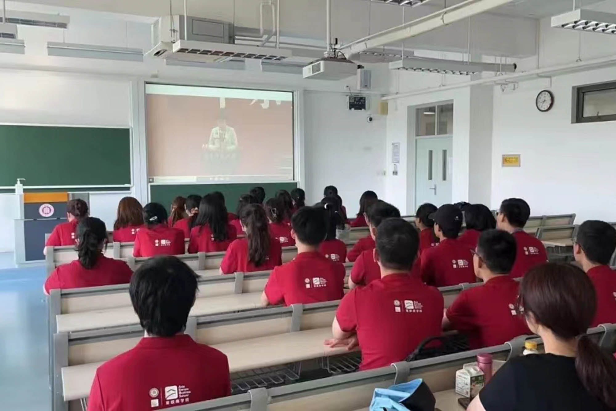 亚欧商学院研究生在宿舍收看直播