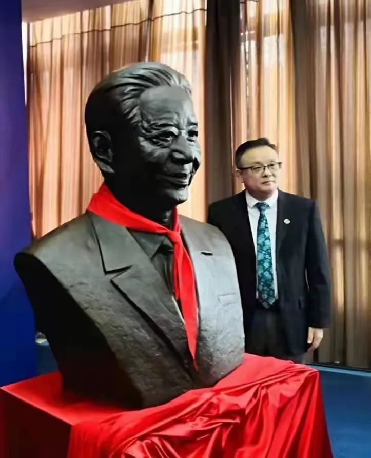 在陈吉余百年诞辰纪念活动上,李道季与陈吉余院士铜像合影