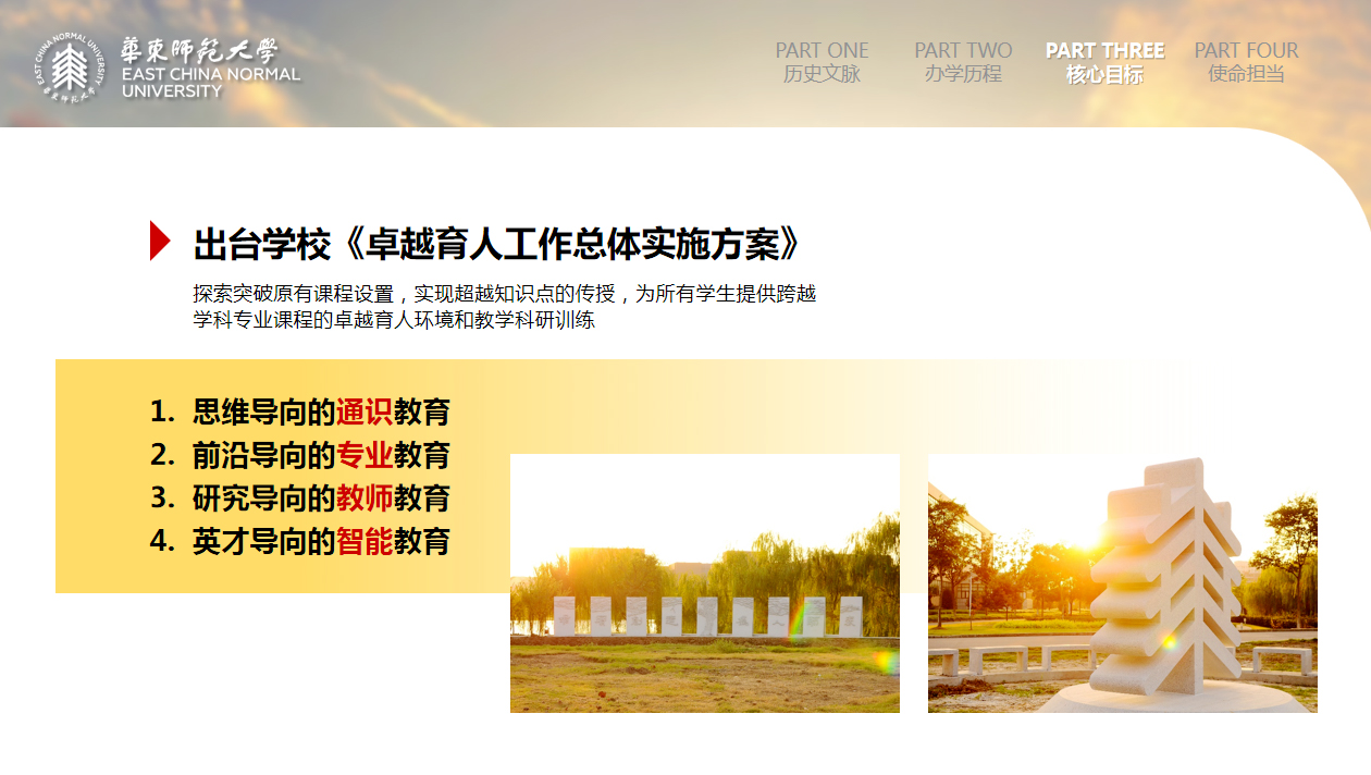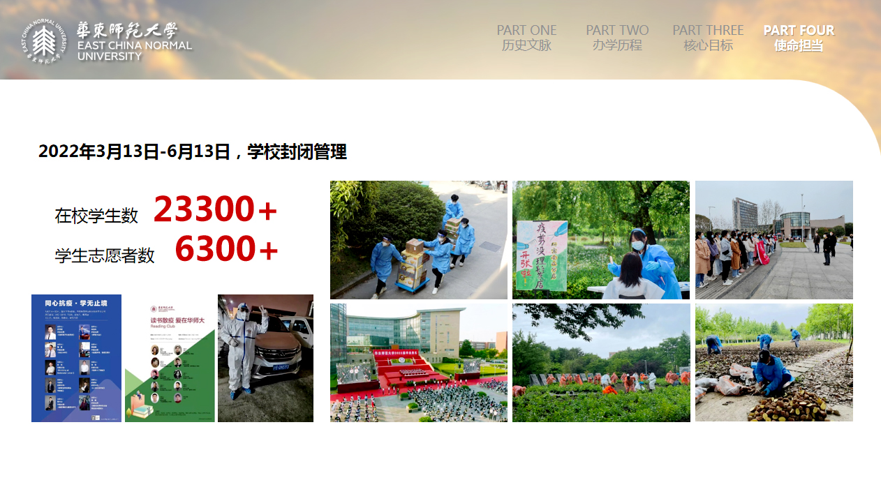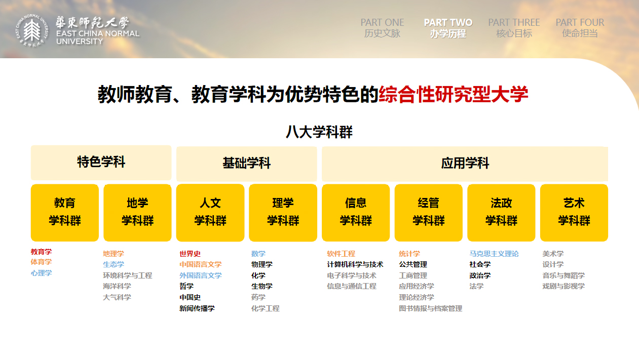 通过图文并茂的丰富史料、系统全面的情况介绍,全校万名新生不仅了解了华东师大的“前世今生”,树立了爱校荣校意识,也对自己的大学生活坚定了理想、增强了信心。