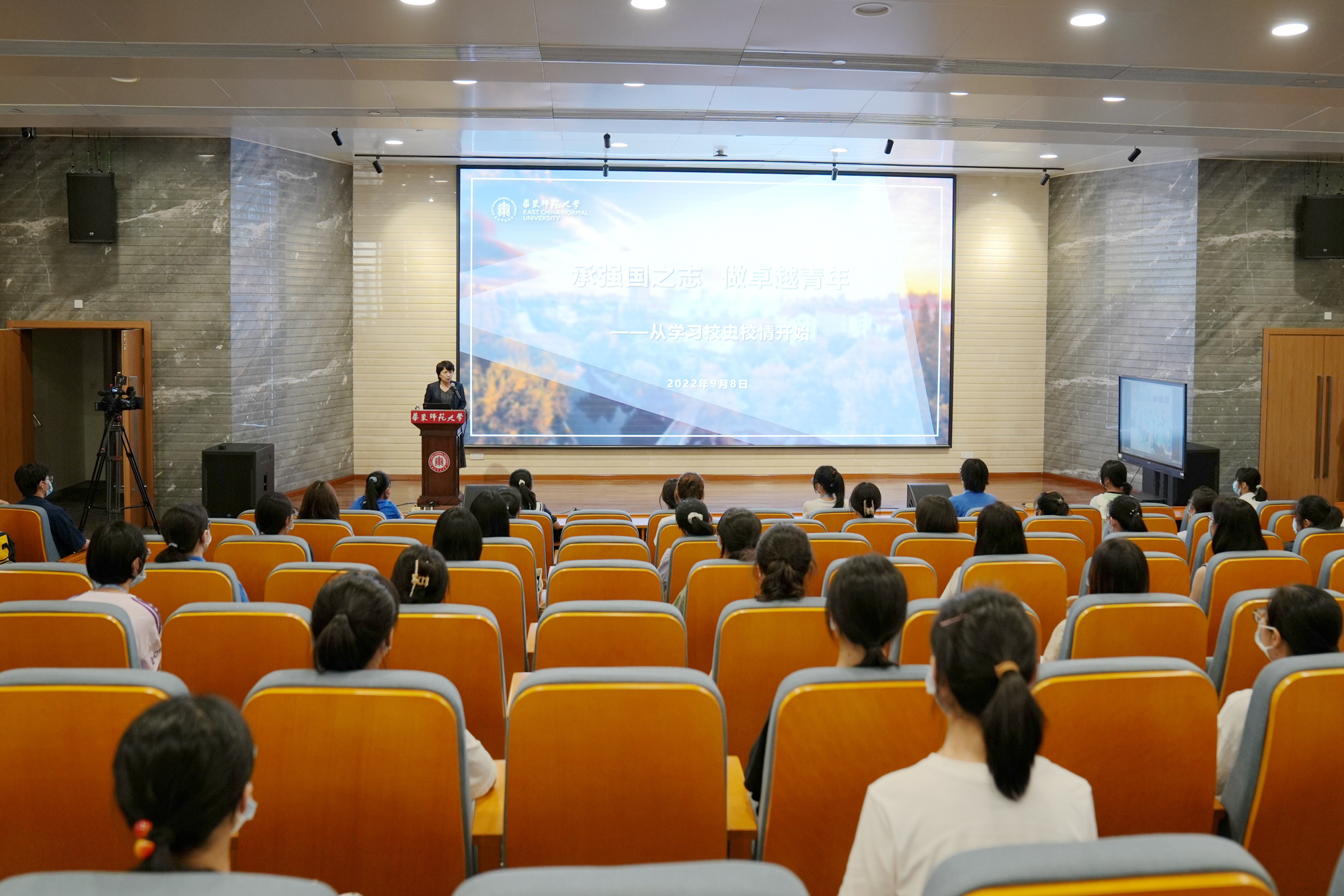 报告伊始,梅兵对2022级新生表示热烈的欢迎,她说,华东师大的美在丽娃河畔、在文脉廊边,但最美的风景永远都是卓越的师大学子们!梅兵从历史文脉、办学历程、核心目标、使命担当四个方面全面、系统地向新生们介绍3245澳门新莆京的校史校情。