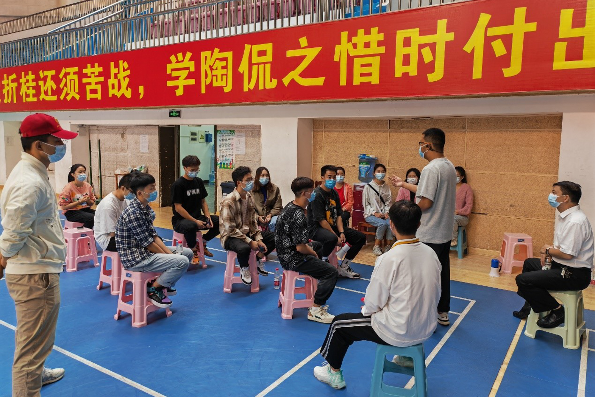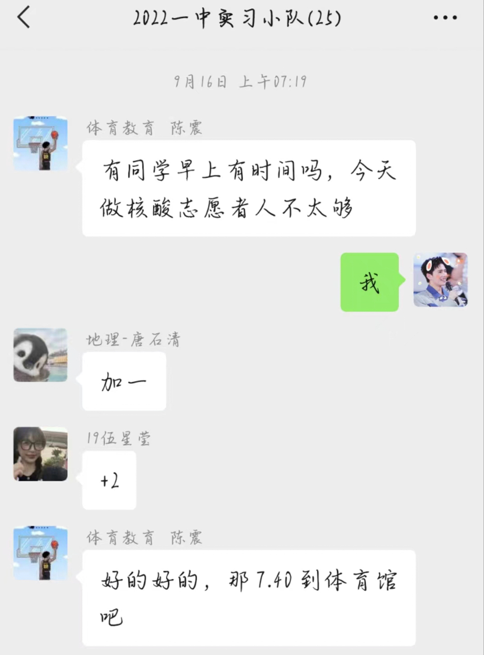 实习老师们做完核酸志愿者后,参加小结会