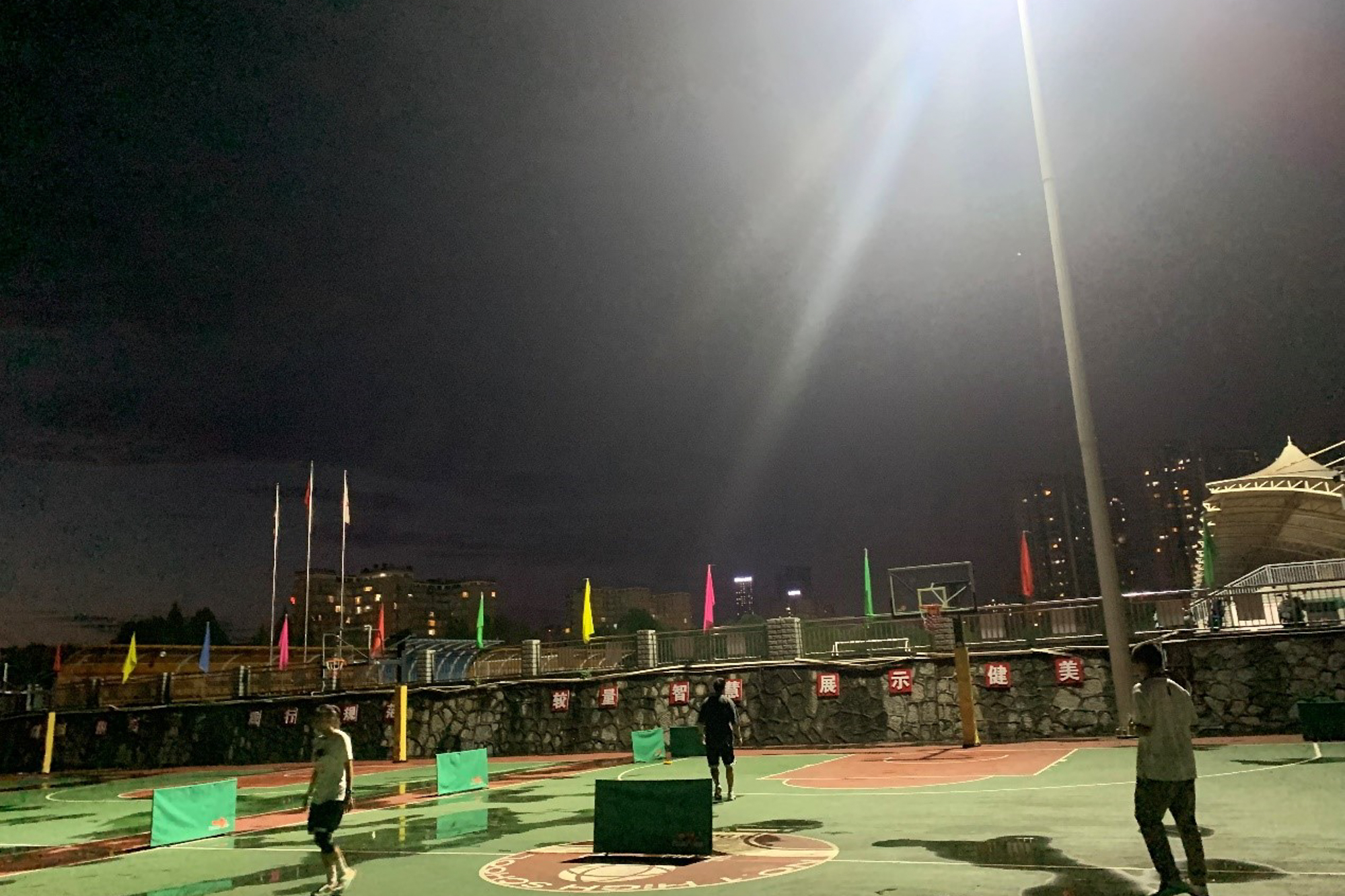 活动前一天晚上,与体育组教师们一起布置场地