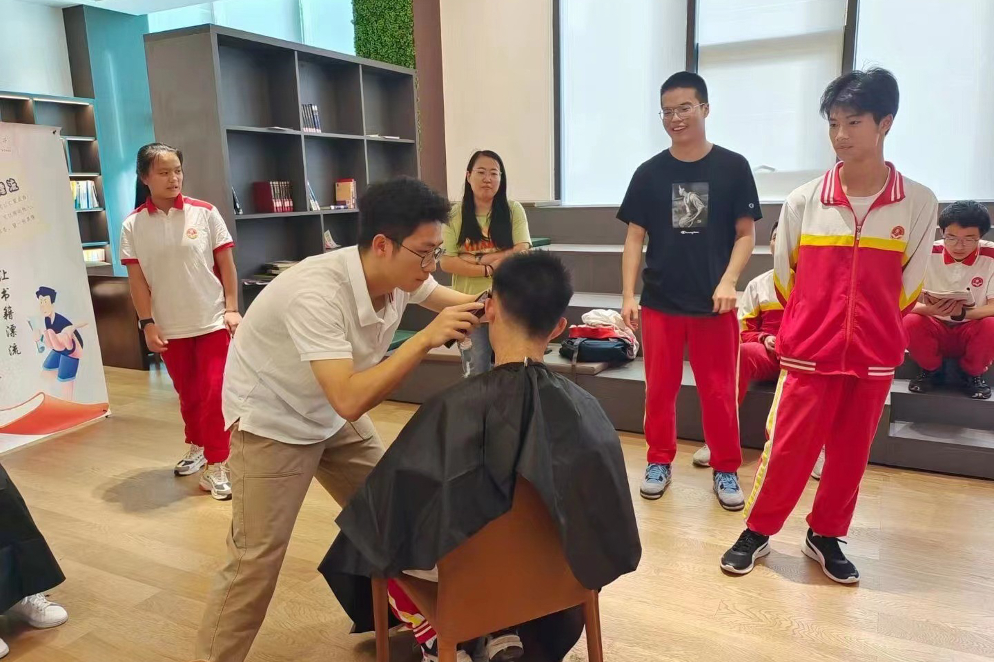 蒙亭峰在贵阳一中为师生理发