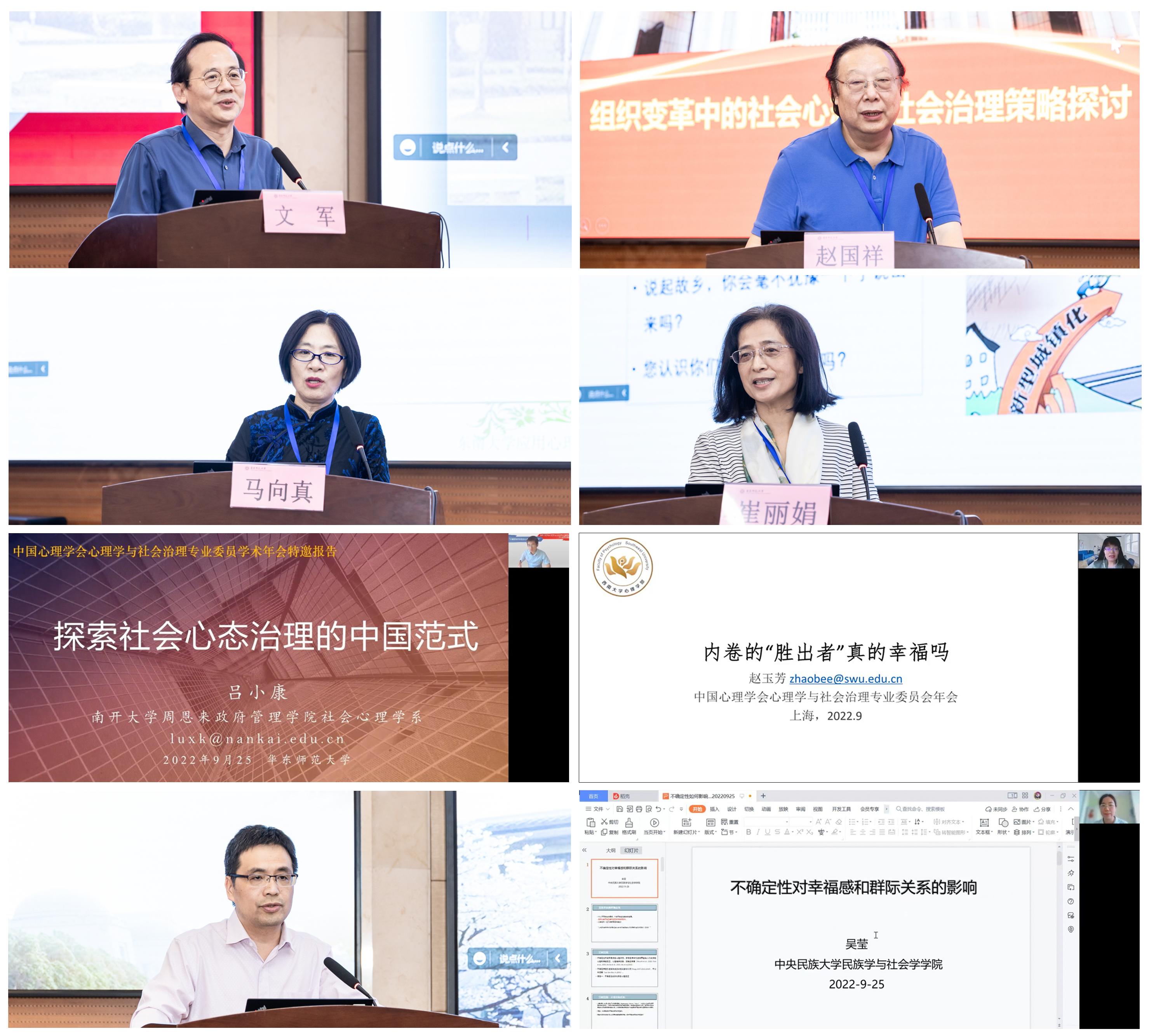 为助力国家更好地进行社会治理,9月23-25日,中国心理学会心理学与社会治理专业委员会第三届学术年会在华东师大普陀校区召开。本次会议以“不确定时代的社会心态:挑战与应对”为主题,由中国心理学会心理学与社会治理专业委员会、华东师大心理与认知科学学院、上海市心理学会主办,上海市心理健康与危机干预重点实验室、上海市脑功能基因组学重点实验室协办。来自国内高校和科研机构的350余位学者,通过线上线下结合方式参会。