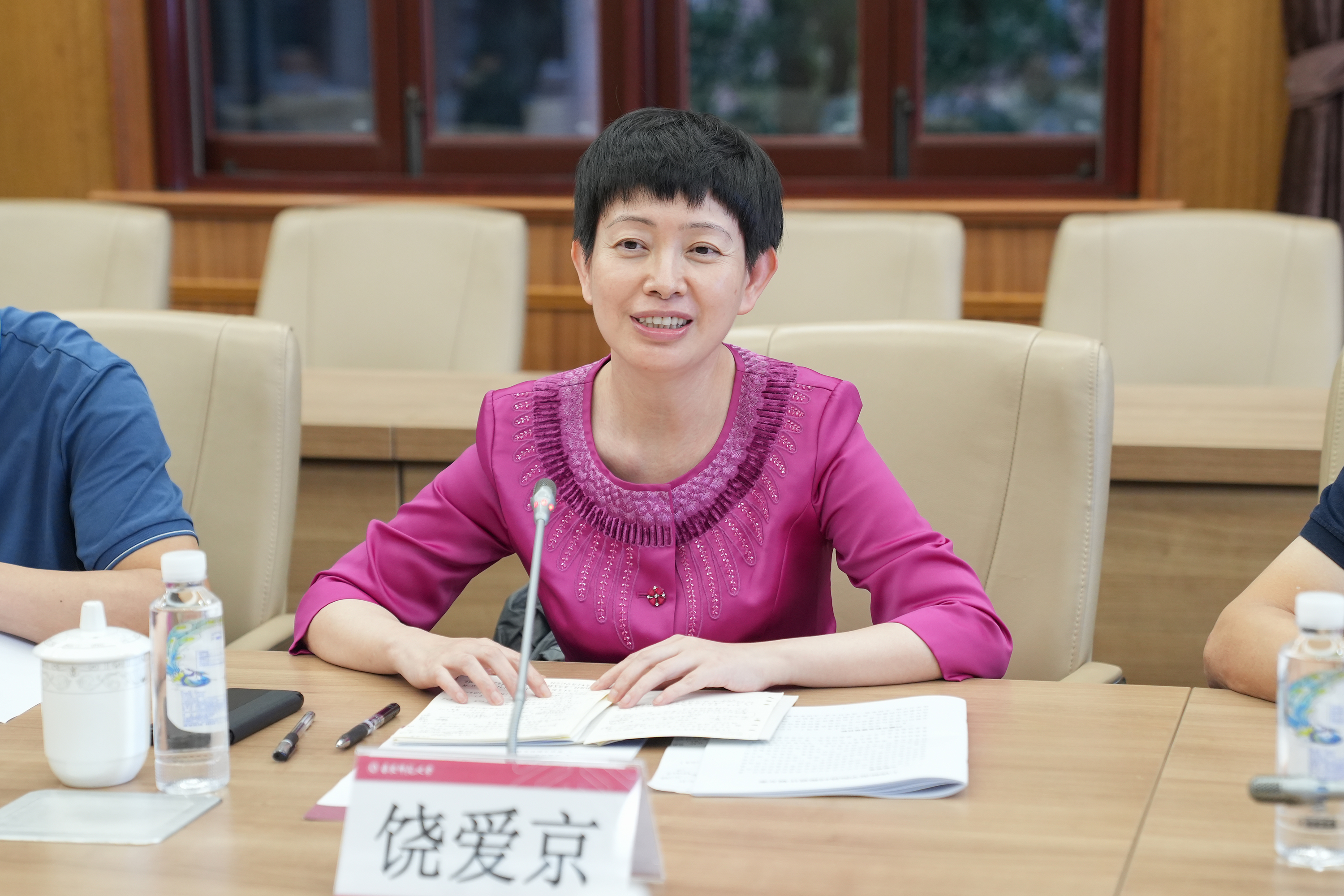 座谈会上,饶爱京首先对华东师大长期以来对上饶师院的关心、支持和帮助表示感谢。她介绍了上饶师院的办学情况,指出上饶师院立足赣东北地区,服务地方基础教育,培养了一大批中小学骨干教师,但在人才队伍、学科建设、基础教育服务能力和学校管理与发展等方面仍有很多薄弱环节,希望通过师范教育协同提质计划,在华东师大的帮扶下,使上饶师院师范教育特色更加鲜明、核心竞争力明显增强、办学层次进一步提升,成为支撑赣东北地区教育高质量发展示范区建设的办学典范。