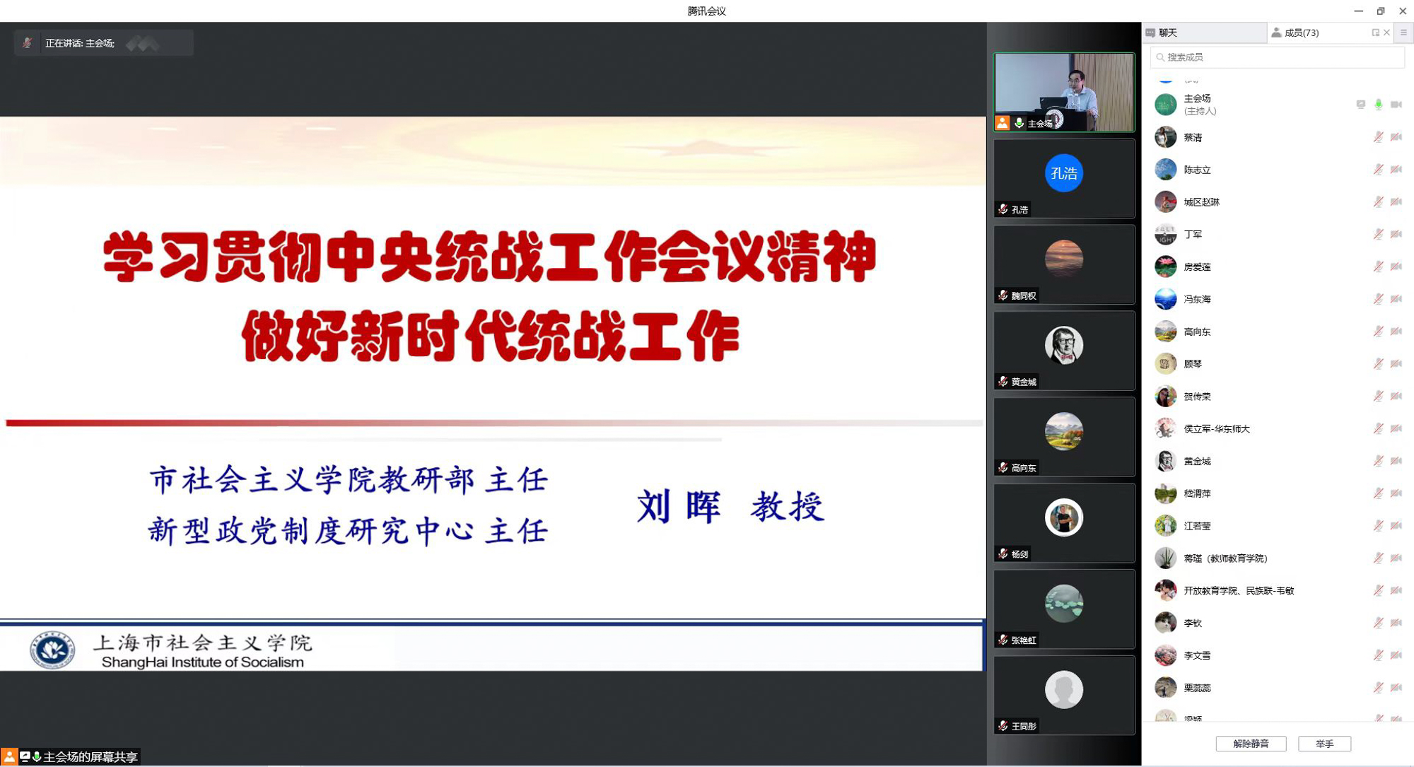 上海市社会主义学院教研部主任、新型政党制度研究中心主任刘晖教授作学习中央统战工作会议精神辅导报告