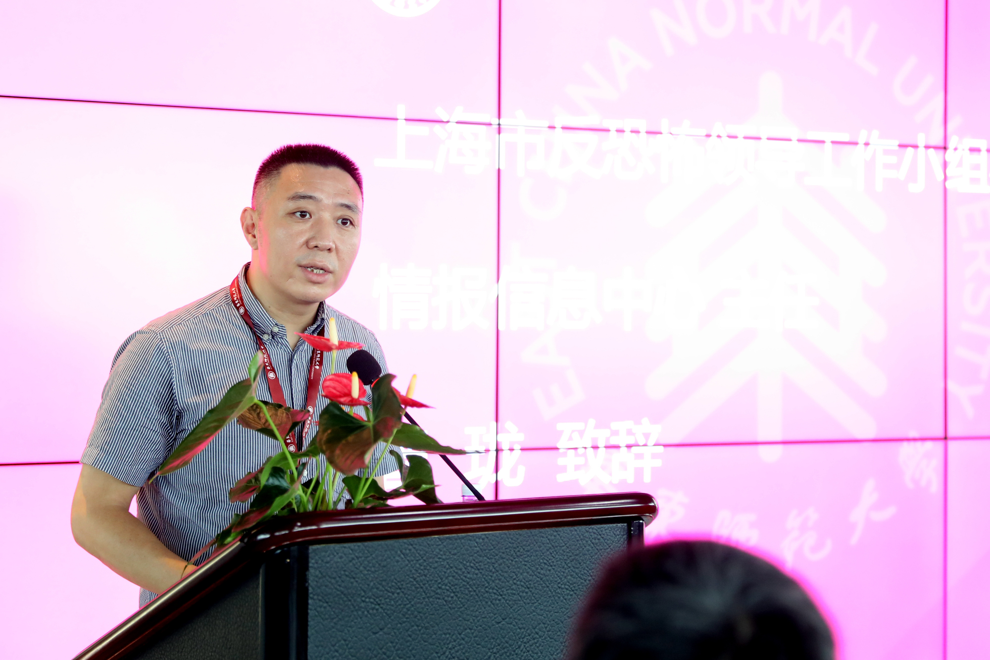 上海市反恐办情报信息中心主任曾珑、新华社上海分社调研部主任张建松、华东师大人文与社会科学研究院院长朱军文、历史学系党委书记王东共同为中心揭幕。