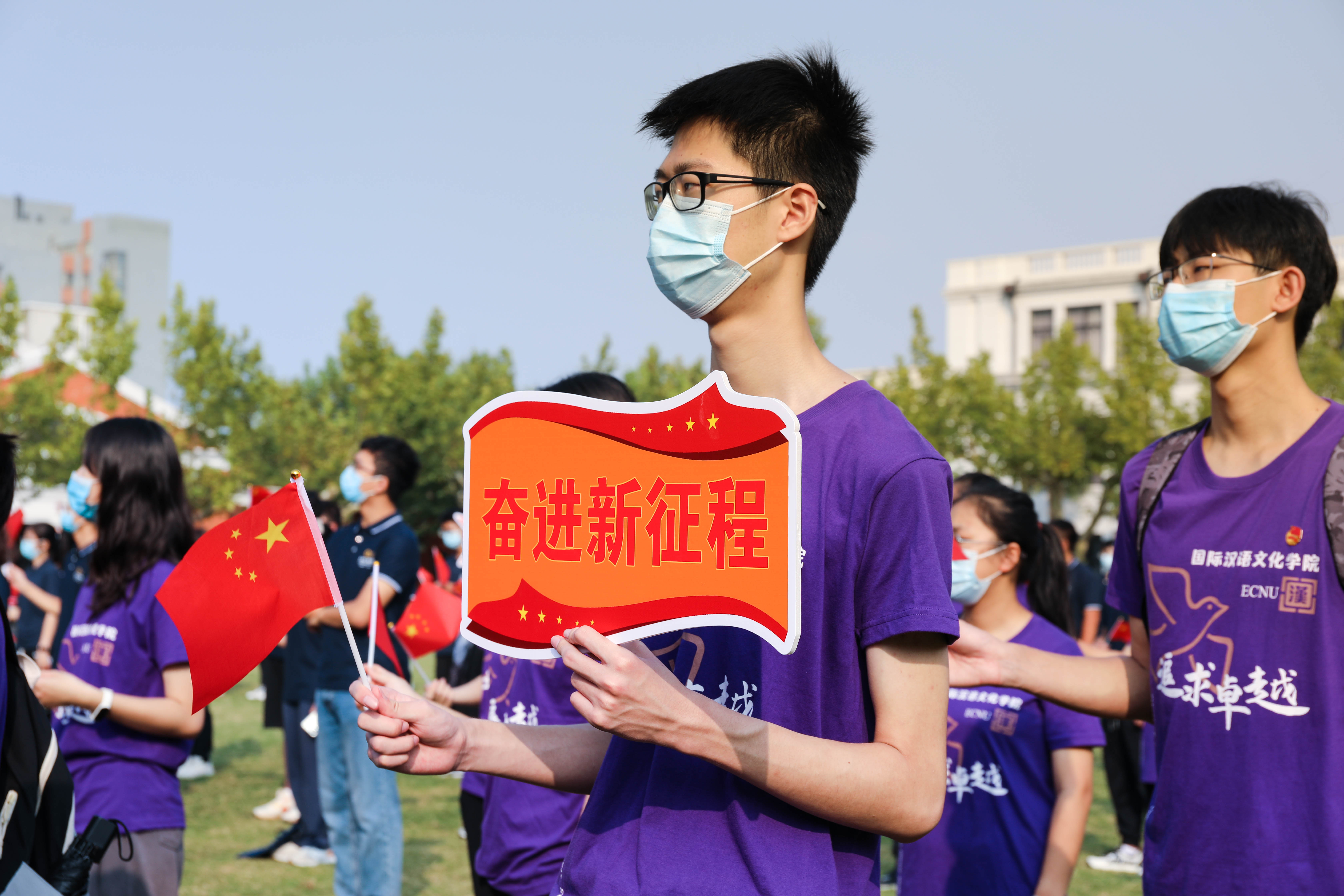 “看着冉冉升起的五星红旗,想到祖国过往几十载的艰苦奋斗和迅猛发展,心中热血澎湃,强烈的教书育人使命感和责任感油然而生。”华东师大孟宪承书院2021级化学专业的兰蕊同学,在参加升旗仪式后激动地说。