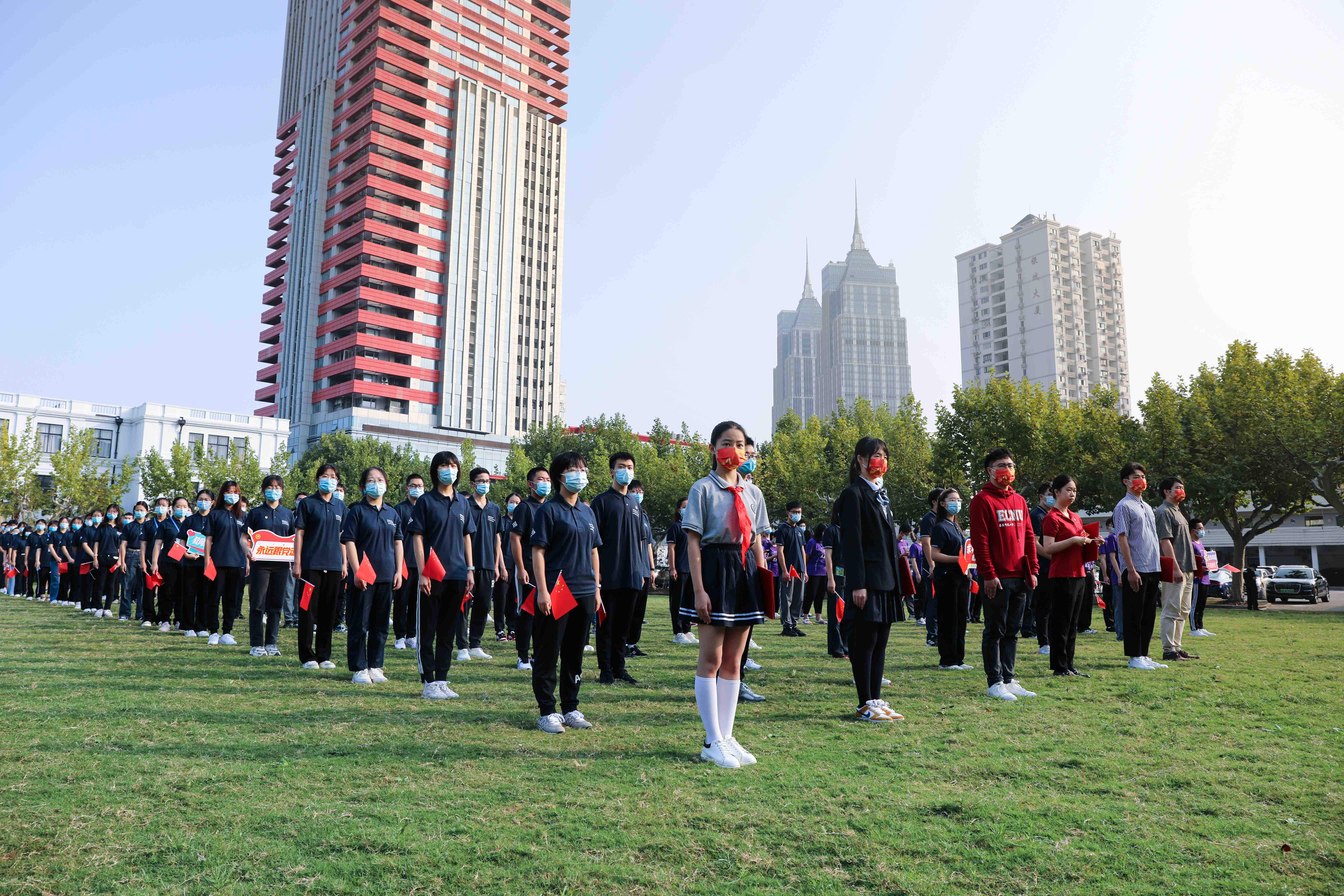 喜迎二十大,以青年之声,传播正能量,让党的思想理论走进校园、走进社区,强化青年的责任与担当。升国旗后,华东师大“新时代宣讲团”出征仪式举行,校党委常委、副校长顾红亮为“新时代宣讲团”授旗。
