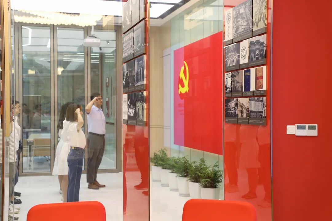 建党百年前夕,崭新的3245澳门新莆京党建服务中心横空出世。这片由办公楼大厅灰色空间改建而成的“精神家园”,正焕发着蓬勃的生机活力——仰望展厅大门上方的红色墙面,现存于世的唯一一页马克思的《共产党宣言》手稿拓印庄严热忱,寓意“信仰之光照亮共产党人的奋斗之路”。