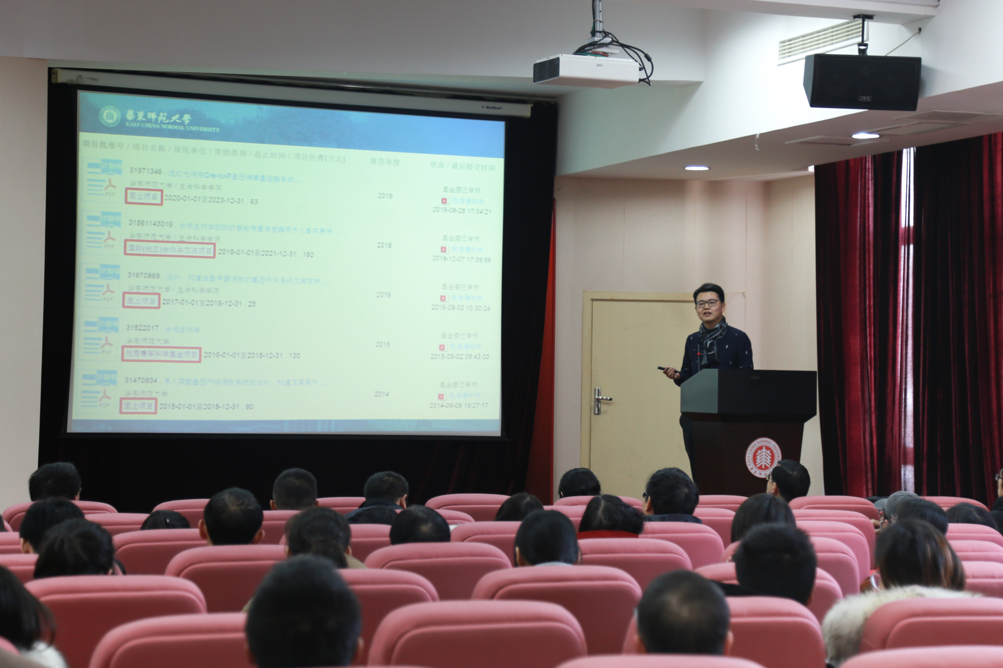 科技处副处长杨艳琴详细介绍了2019年国家基金资助概况及2020年资助政策变化要点,陈美通报了2019年我校基金情况,并介绍了2020年基金申报工作的具体计划和安排。在两校区的动员大会中,科技处还邀请了生态与环境科学学院的周旭辉教授、生命科学学院的叶海峰教授、化学与分子工程学院的杨海波教授、精密光谱科学与技术国家重点实验室的武海斌教授,分别从专家和申请者的角度分享基金申请书撰写的经验及评审要点。在交流互动环节,与会专家为在座老师带来诸多解答和建议。