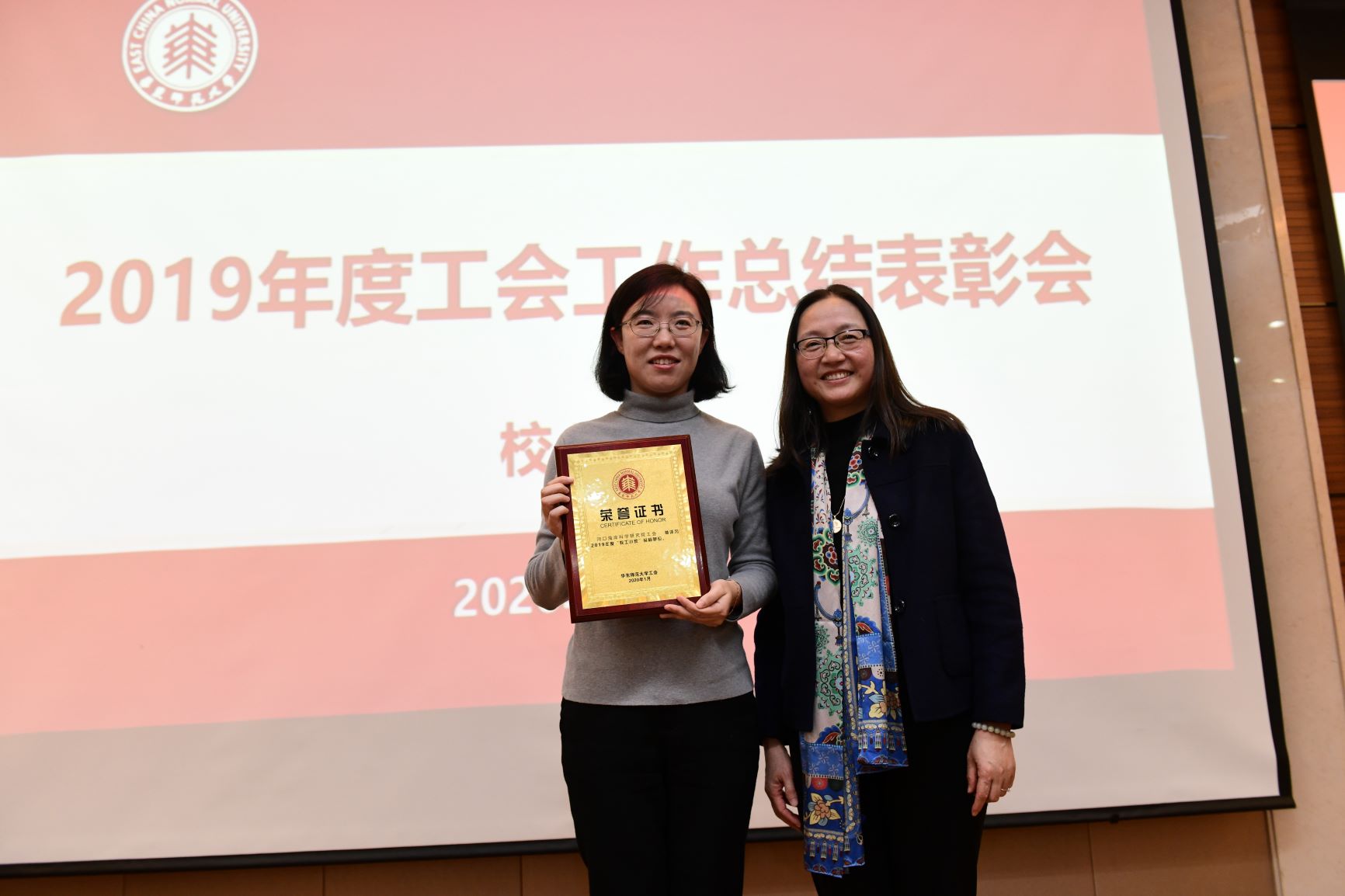 校工会“两委委员”洪燕为2019年度校优秀工会干部颁奖