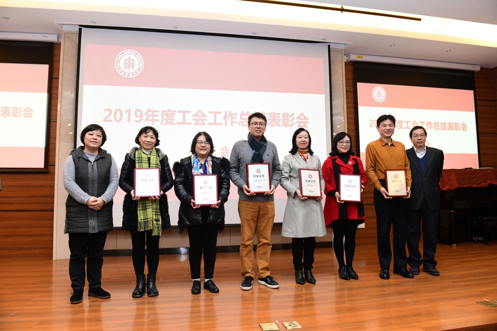 会上,陈立侨宣读了校工会《关于公布2019年先进教工小家免检单位、先进教工小家、优秀协会、优秀工会干部和优秀工会积极分子评选结果的通知》,河口海岸科学研究院工会获2019年度校“教工小家”免检单位称号;中国语言文学系等12家部门工会获2019年度校先进“教工小家”称号;太极拳协会和乒乓球协会获2019年校优秀协会称号;刘晓丽等33位同志获2019年度校优秀工会干部称号;凤媛等122位同志获2019年度校优秀工会积极分子。王平、杨素华、陈立侨以及与会的校工会“两委委员”斯阳、嵇渭萍、房建军、杨海燕、石云、陈旦锋、洪燕等为获奖的集体和个人颁发了获奖证书。