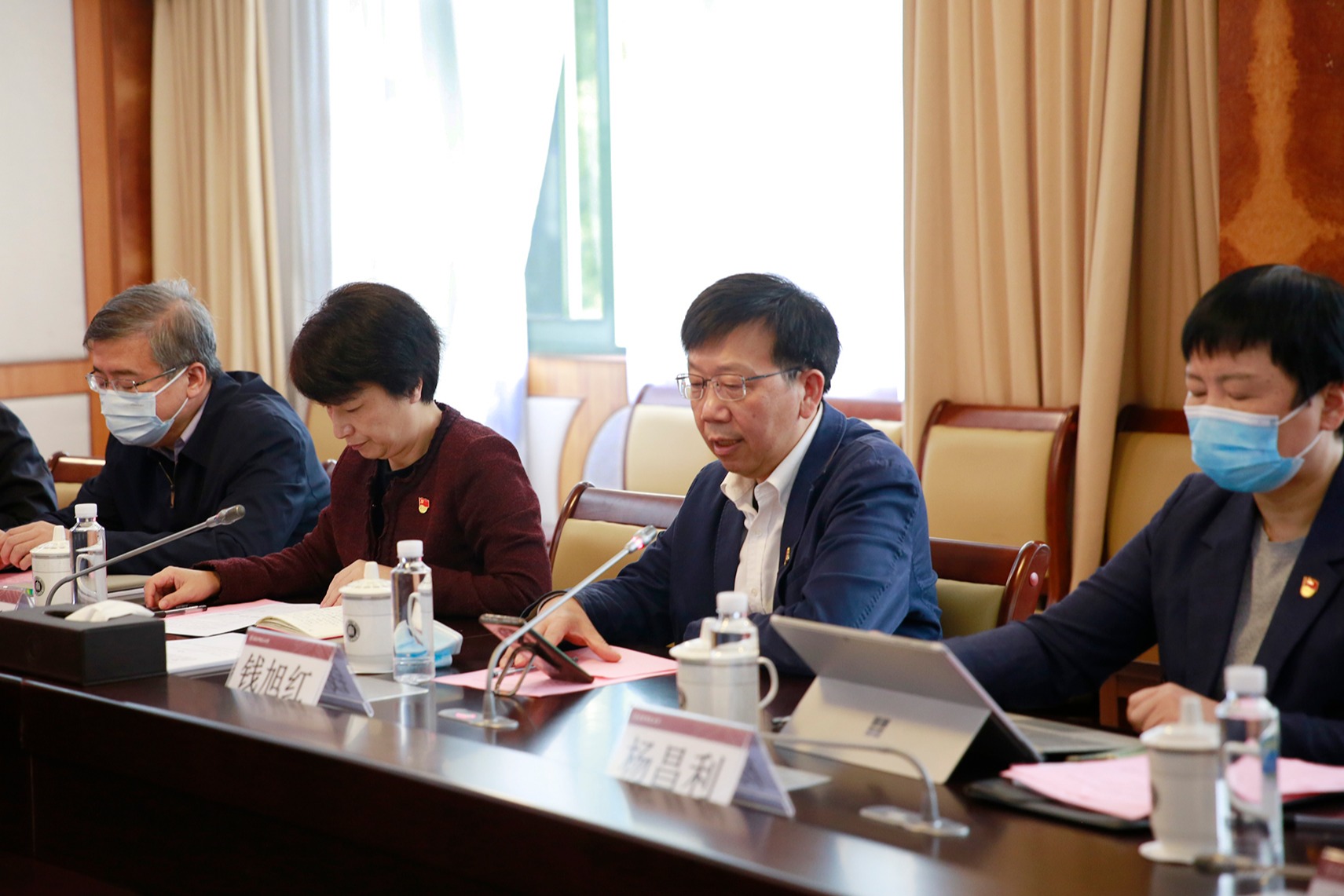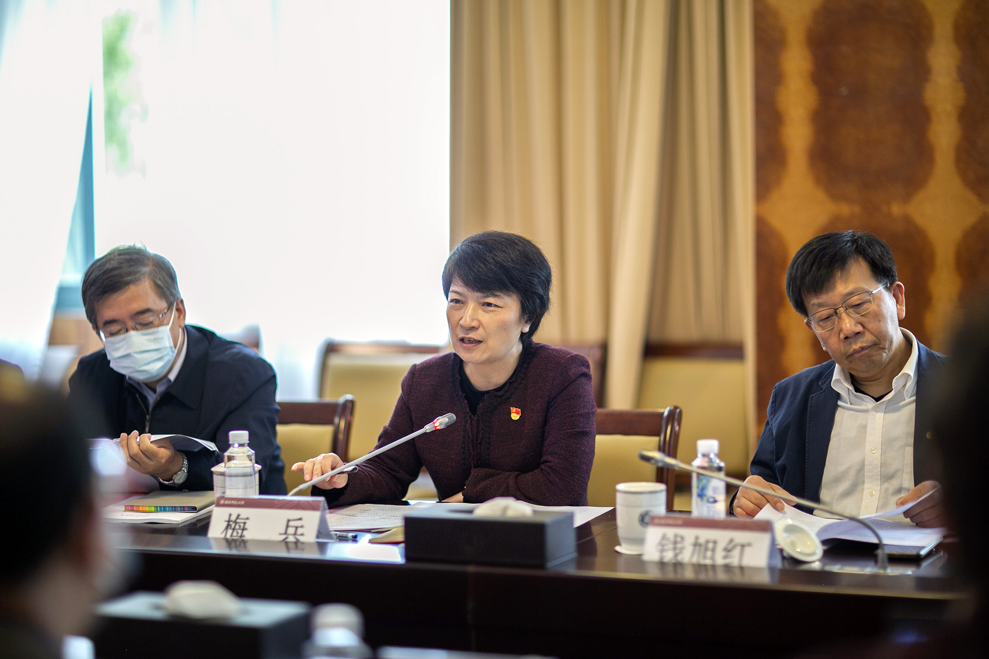 校党委书记梅兵主持学习会并交流思考体会