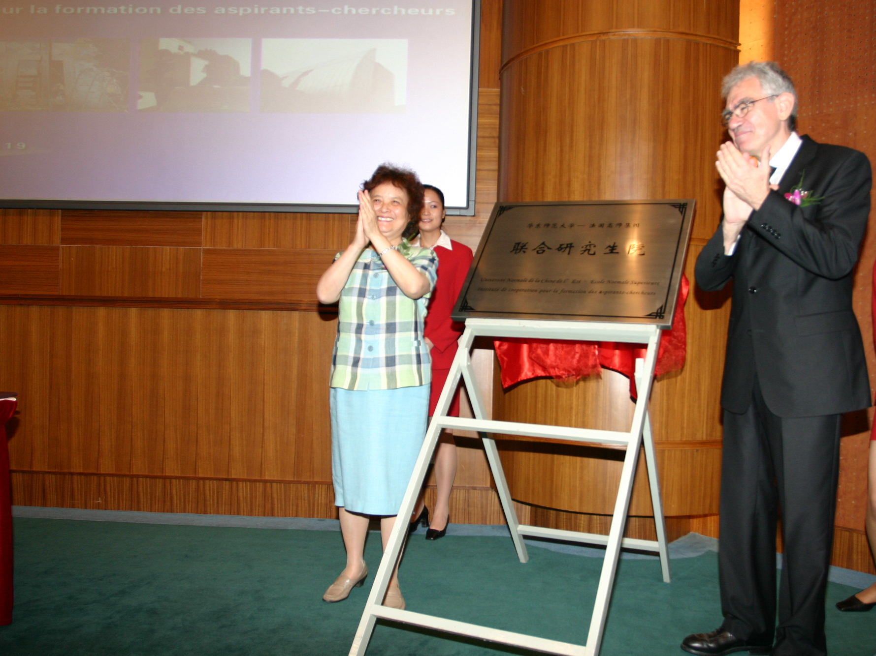 2005年6月,华东师大时任党委书记张济顺与巴黎高师时任校长Gabriel RUGET为中法联合研究生院揭牌