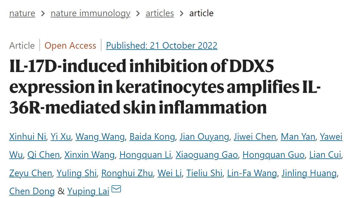 论文链接:IL-17D-induced inhibition of DDX5 expression in keratinocytes amplifies IL-36R-mediated skin inflammation | Nature Immunology