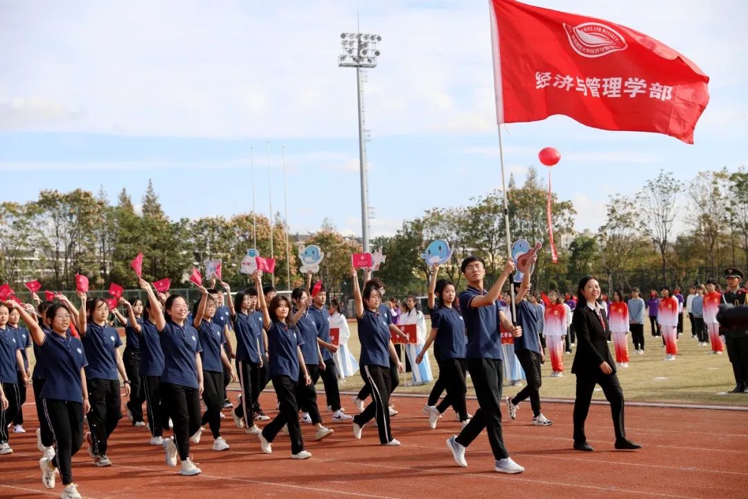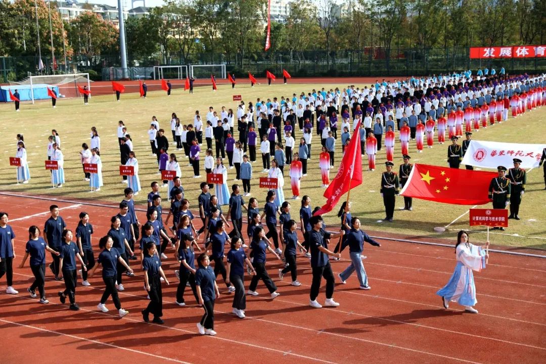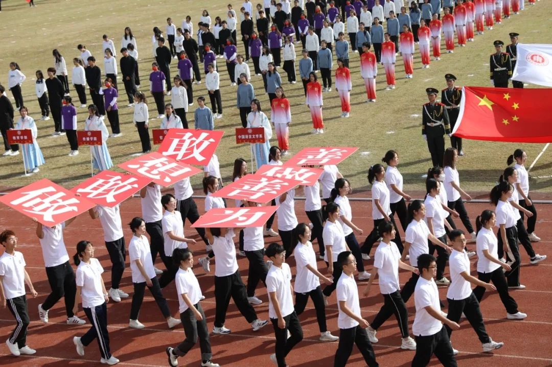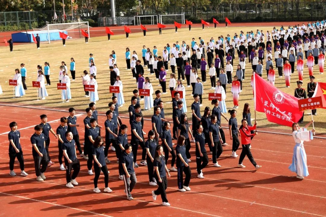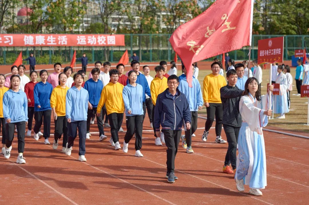 本届运动会为期两天,运动员们将在校运会30余项比赛中展开角逐。还没看够?让我们近距离感受现场!(按入场顺序)