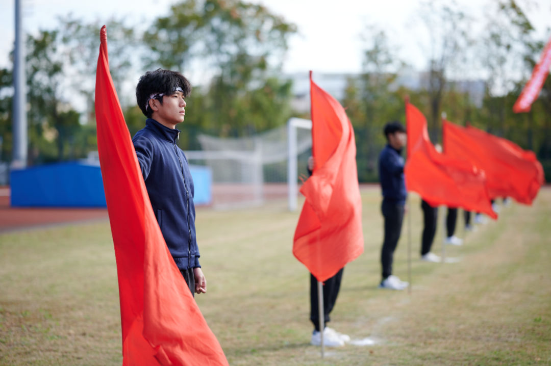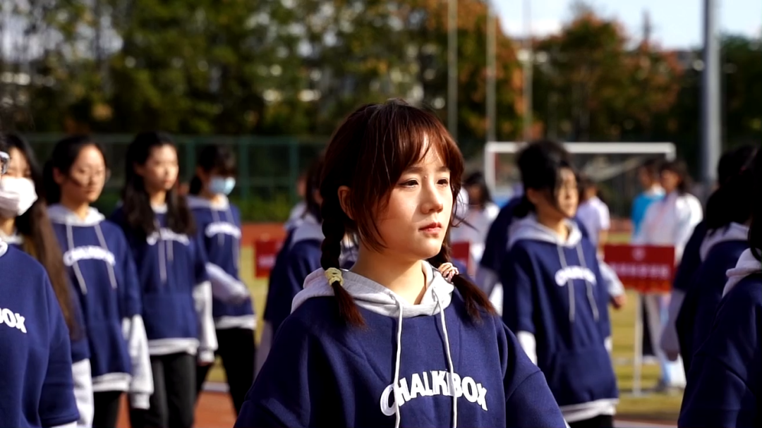 看,他们英姿飒爽,以不怕万难坚定的面貌注视未来;听,他们拍打手鼓,用整齐的鼓声向田径场发出宣战!
