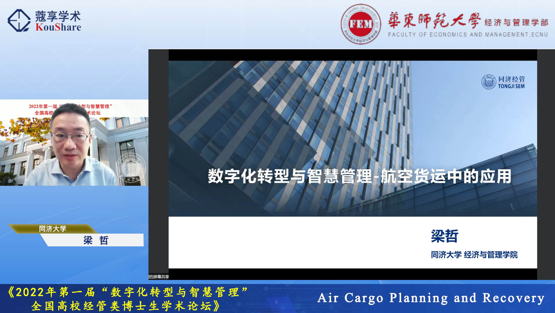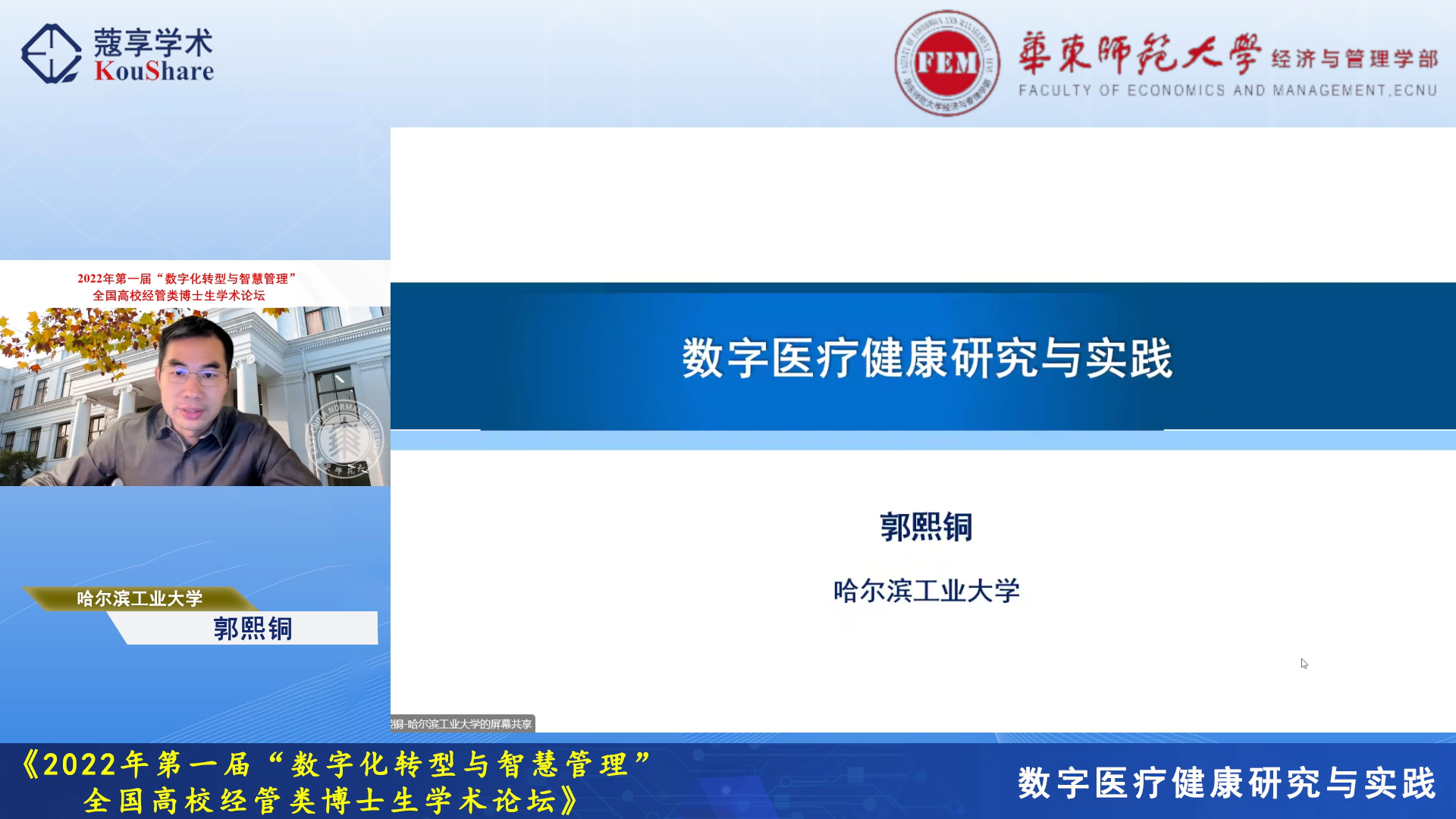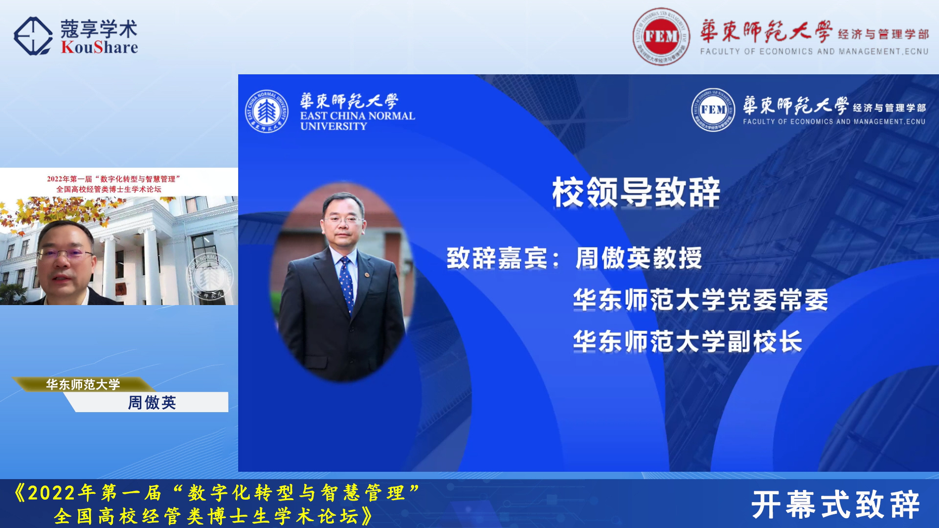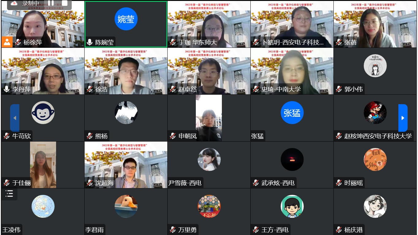 10月22-23日,由华东师大研究生院主办,华东师大经济与管理学部、工商管理学院、统计交叉科学研究院和《系统管理学报》编辑部联合承办的2022年首届“数字化转型与智慧管理”全国高校经管类博士生学术论坛在线举行。论坛由经管学部统计交叉科学研究院副院长、中国运筹学会医疗运作管理分会副理事长杜刚教授发起和策划组织,吸引了来自全国多所院校的累计1.2万余名师生在线观看和研讨。