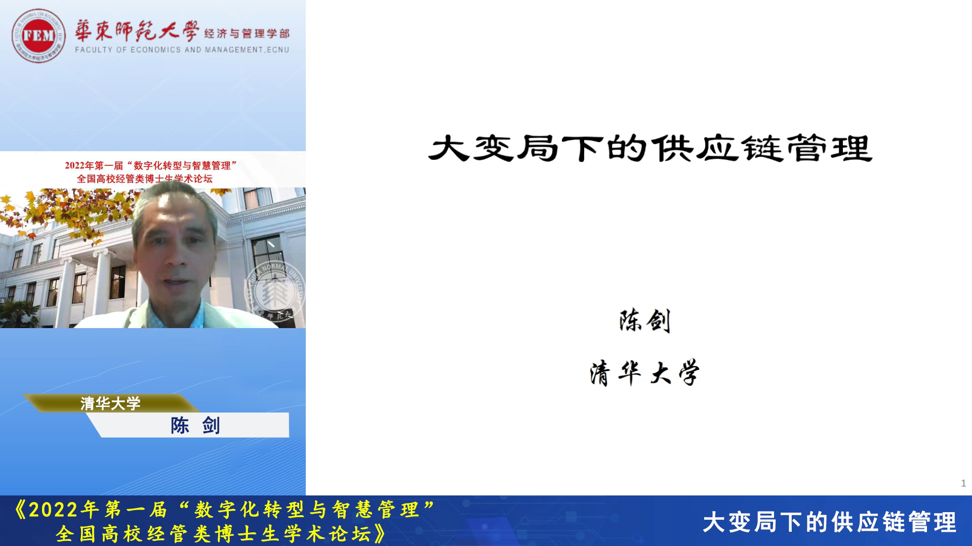 清华大学陈剑教授以“大变局下的供应链管理”为题作主旨报告。陈剑教授认为,在国际形势和格局复杂的背景下,全球供应链面临战略调整,大变局既是机会也是挑战。报告从不同方面说明大变局对供应链的影响,如产品创造、消除制造偏见、网络效应和保护主义挑战经济全球化发展等。