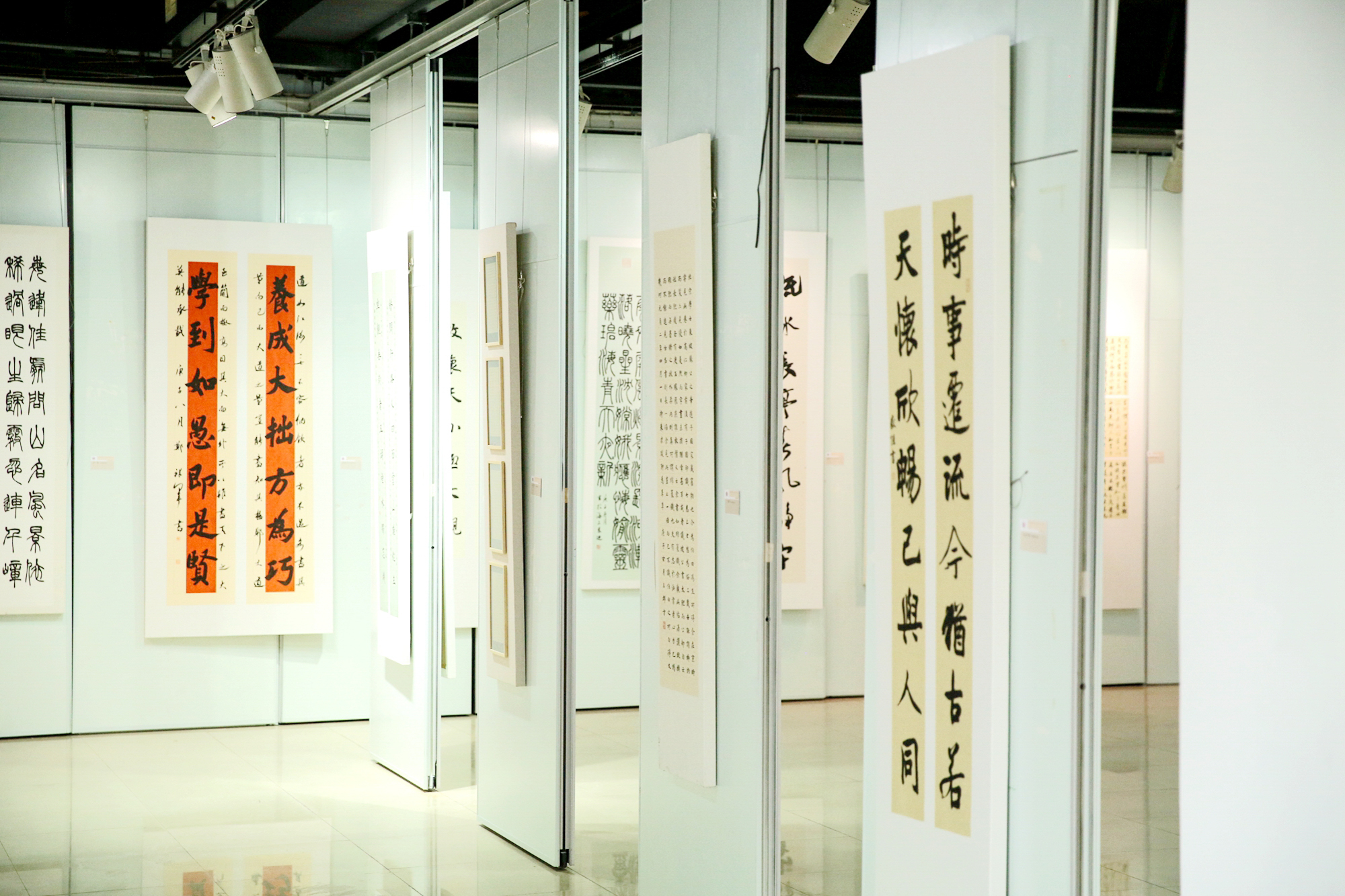 此外,美术学院室内展厅还布设了两个展览,分别为红色主题的“印证时代篆刻展”和“《兰亭》题咏书法展”。