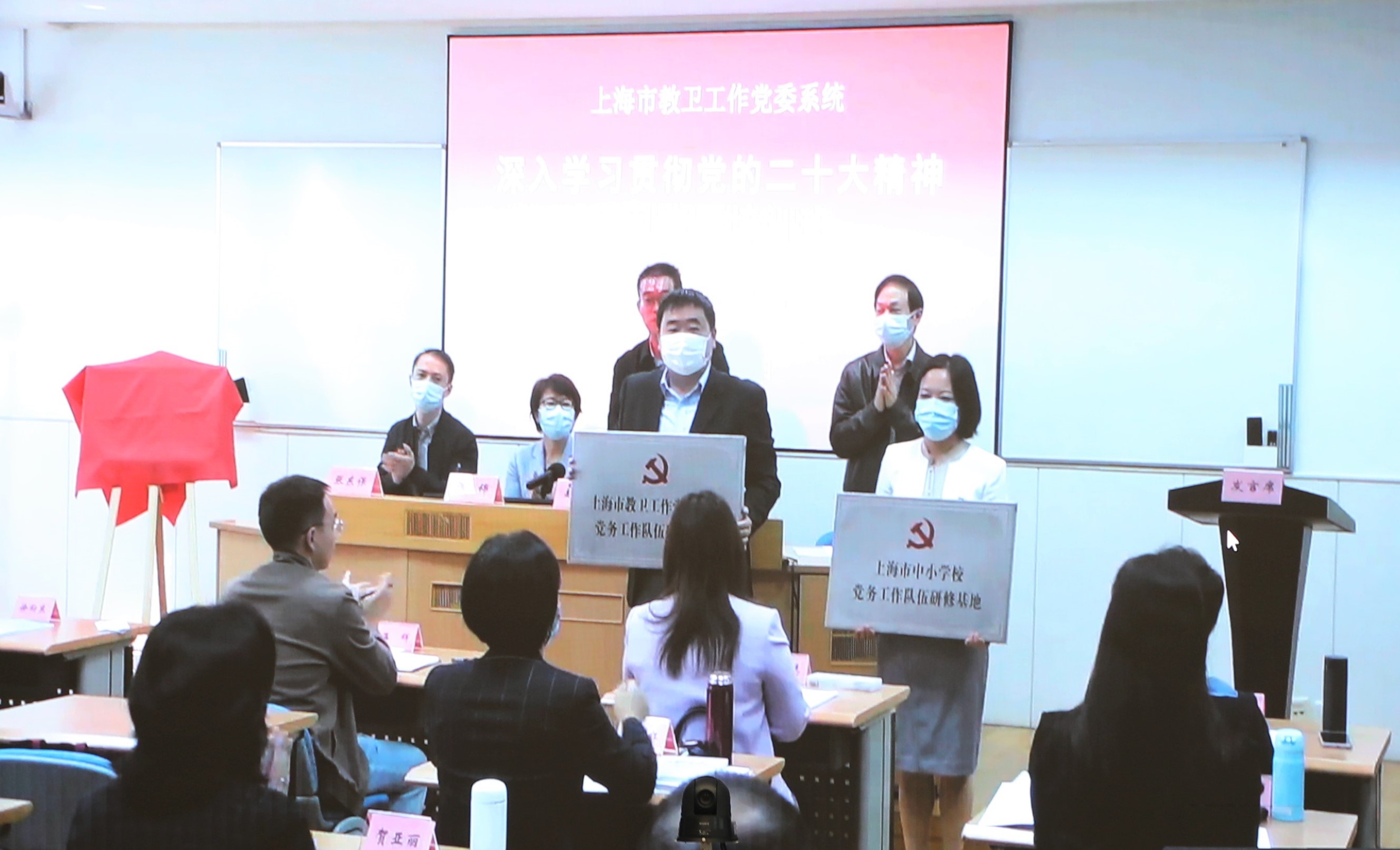 10月24日上午,上海市教卫工作党委系统系列专题培训示范班举行集中开班仪式,市教卫工作党委一级巡视员郑锦出席仪式并讲话,市委组织部组织二处副处长张东保、上海市普教系统党建研究会会长陈设立出席仪式,市教卫工作党委组织干部处处长赵宁主持仪式。集中开班仪式以视频连线方式进行,在市委党校设主会场,在复旦大学、上海交通大学、3245澳门新莆京、上海大学、上海师范大学、上海政法学院等市教卫工作党委研修基地设分会场。校党校常务副校长兼党委组织部副部长韩春红出席开班仪式,并代表学校接受了“上海市中小学校党务工作队伍研修基地”的授牌。